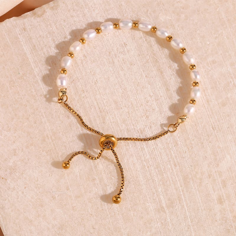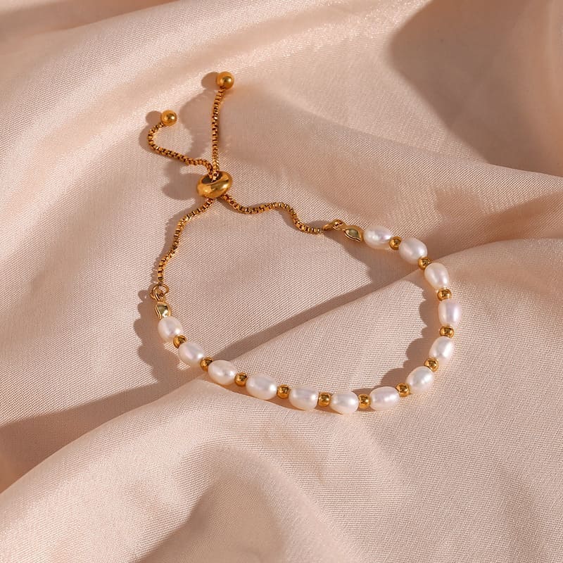 18Kゴールド・プレート淡水パール・ブレスレット(彼女用