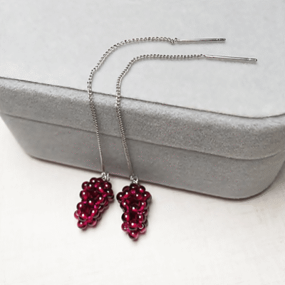 ガーネットダングルクリスタルピアス耳ラインぶどう型バルク