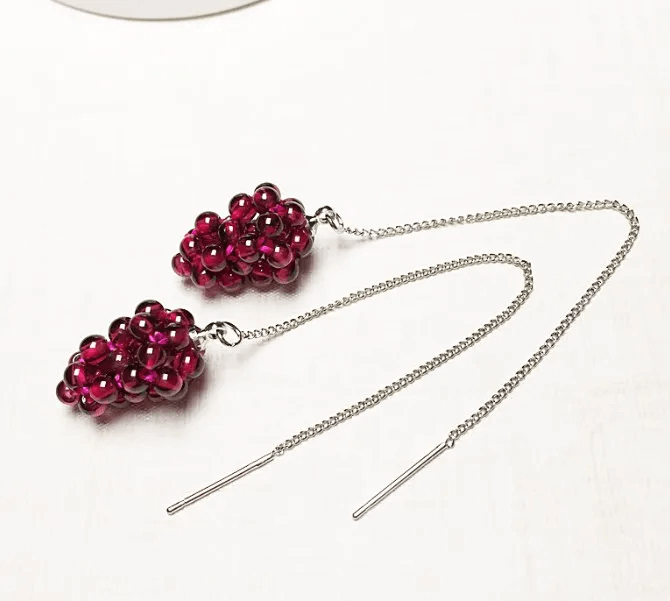 - The garnet dangle crystal earrings with unique grape shape can show your elegant and tender temperament and style.