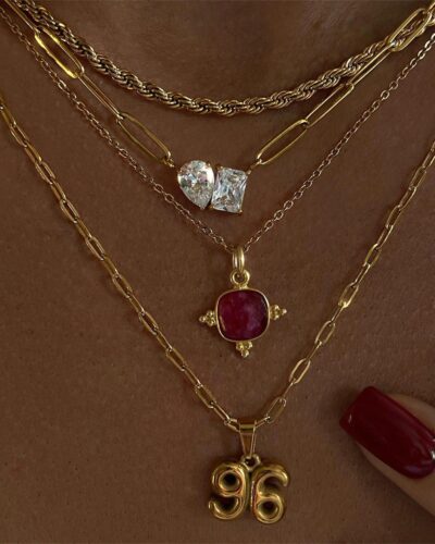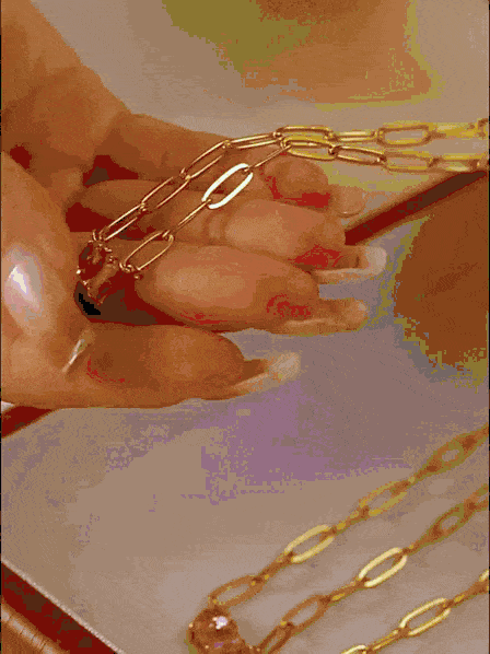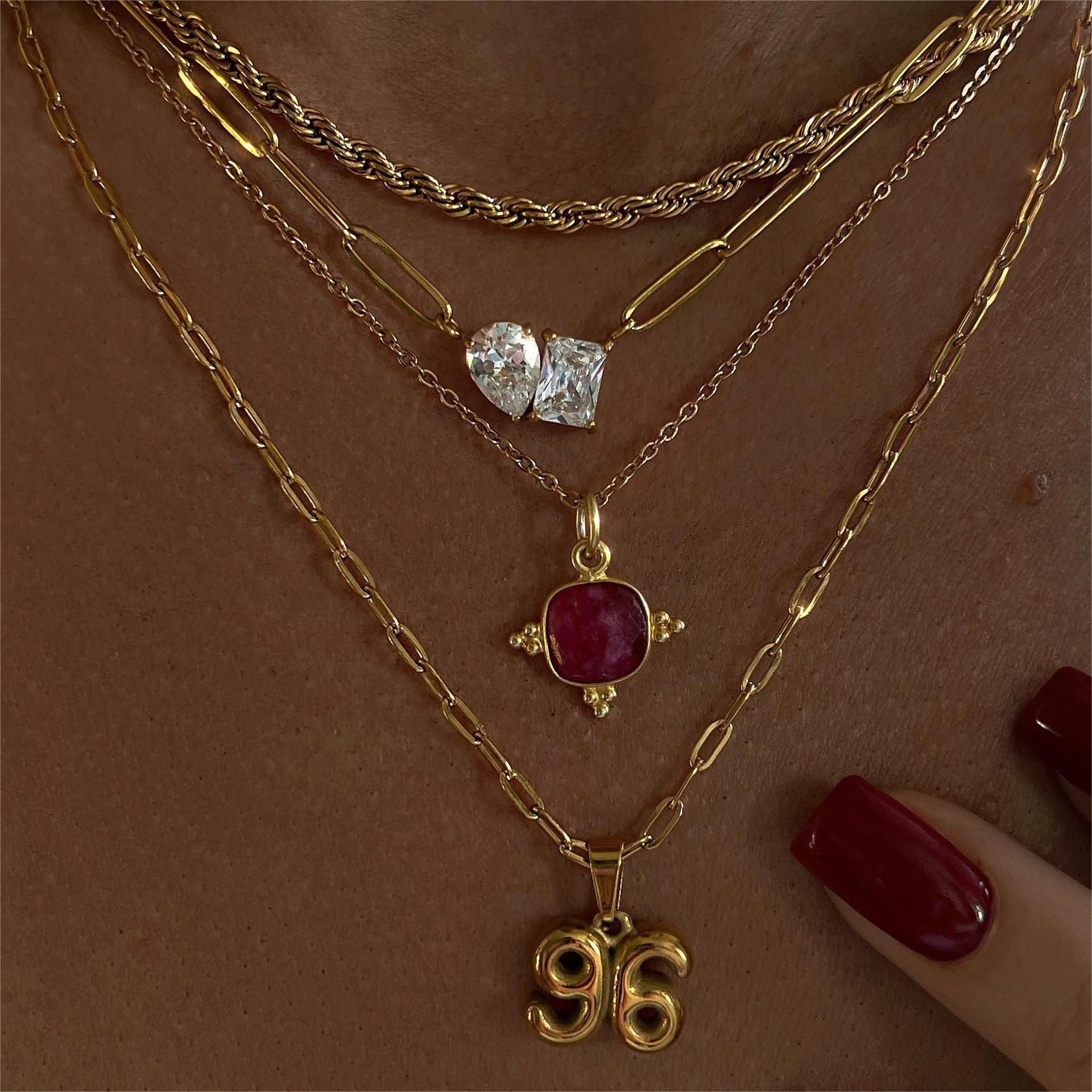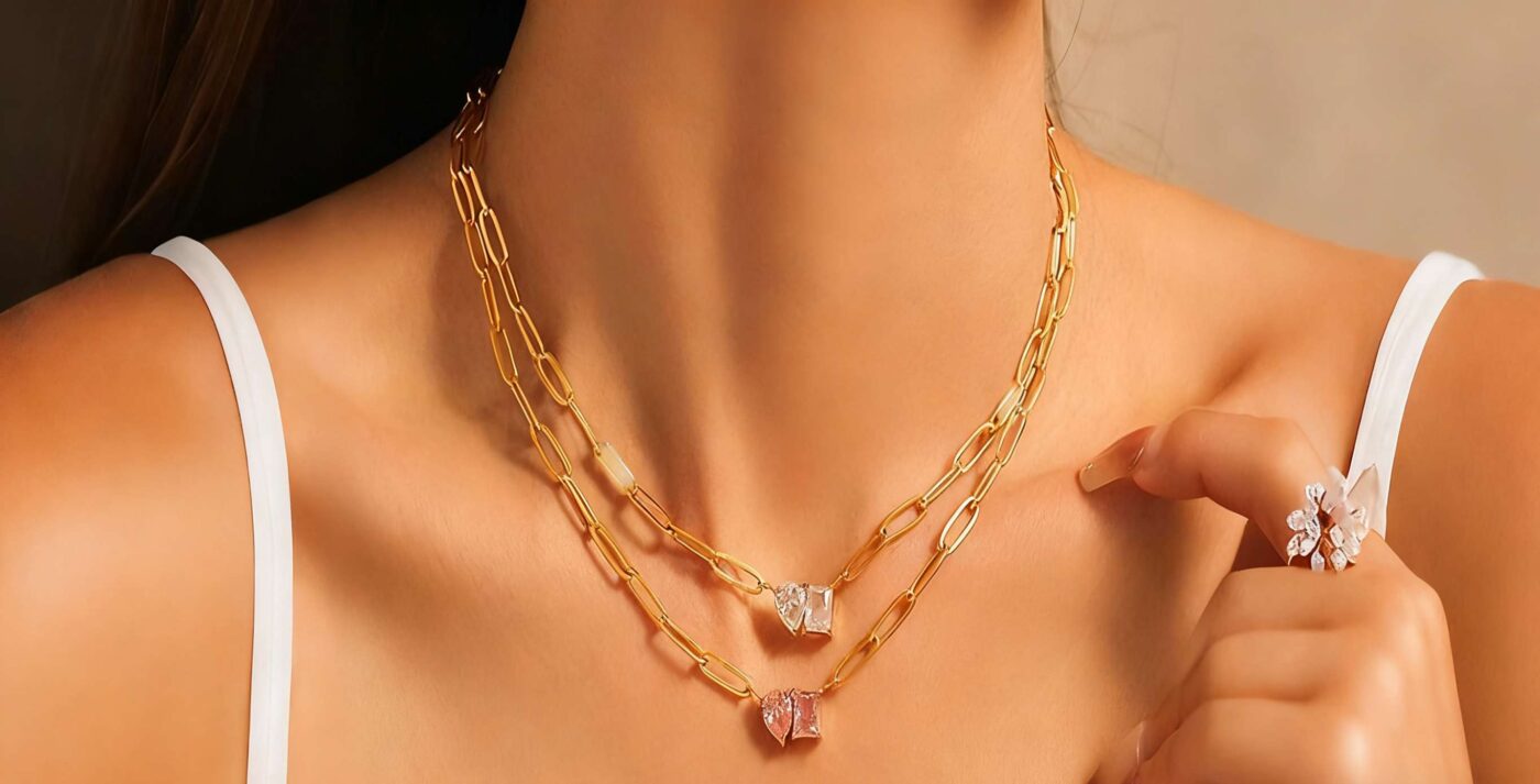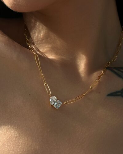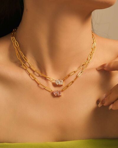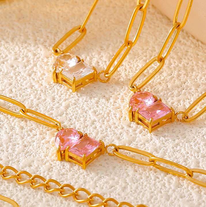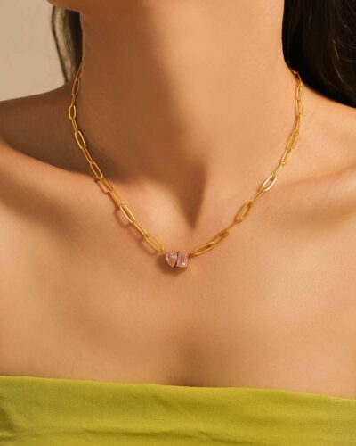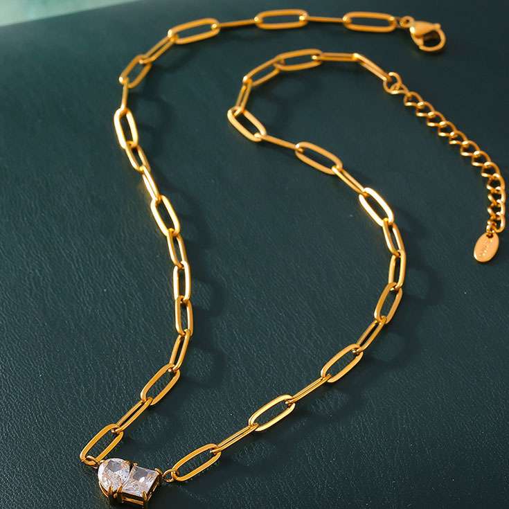パールカットとスクエア・ジルコンのゴールドコーティング・ステンレス・ネックレス