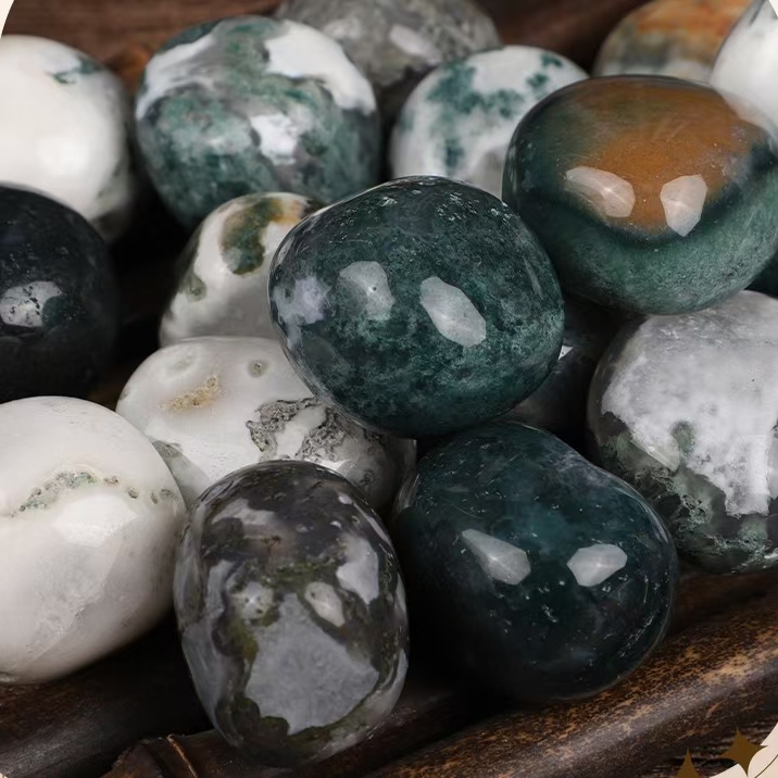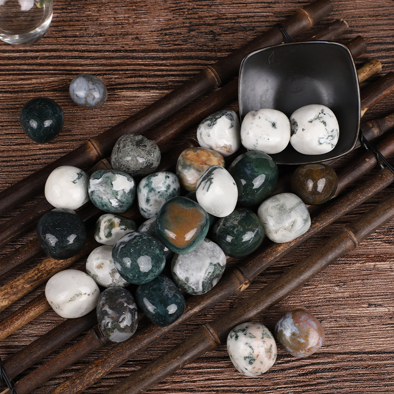 グリーンモス瑪瑙タンブルロックバルクガーデンデコレーション