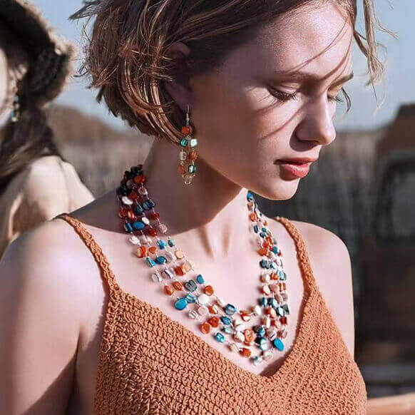 ボヘミアンスタイル不規則貝殻レイヤードネックレス