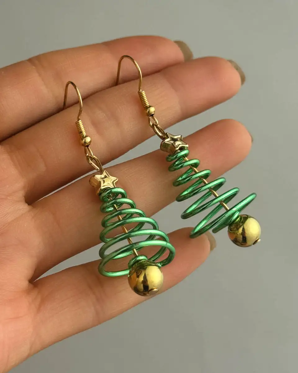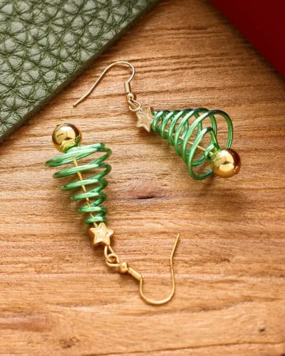 Minimalist Linear Spiral Christmas Tree Earring for Women