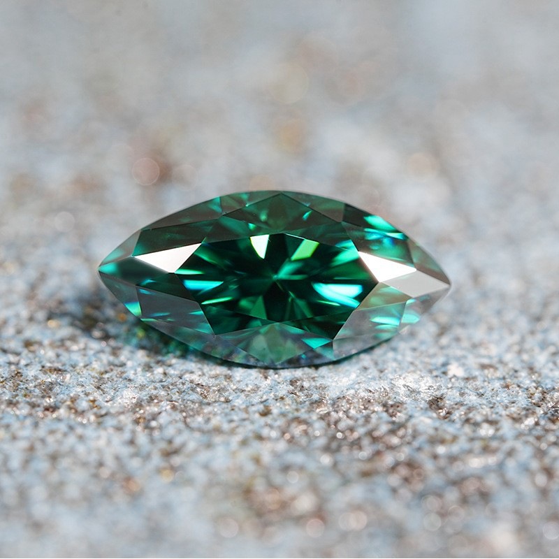 Marquise Cut Teal Moissanite loose stone with a unique boat-shaped profile. The hardness is close to diamond, and it is wear-resistant and scratch-resistant. Perfect choice for high-end jewelry customization. Available at wholesale prices, no MOQ and stable supply!