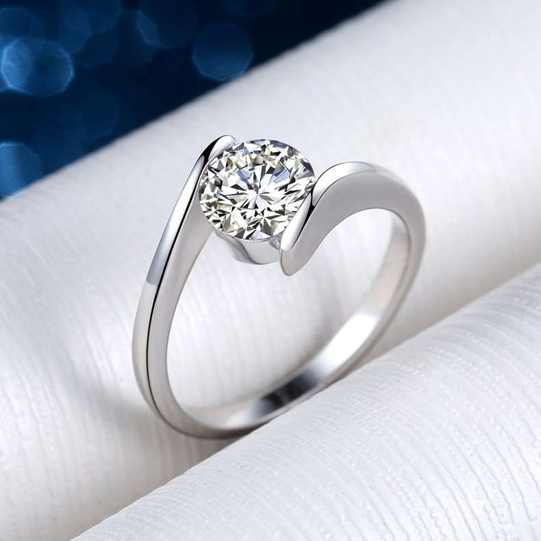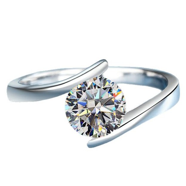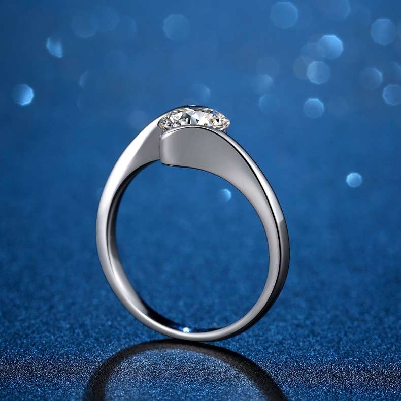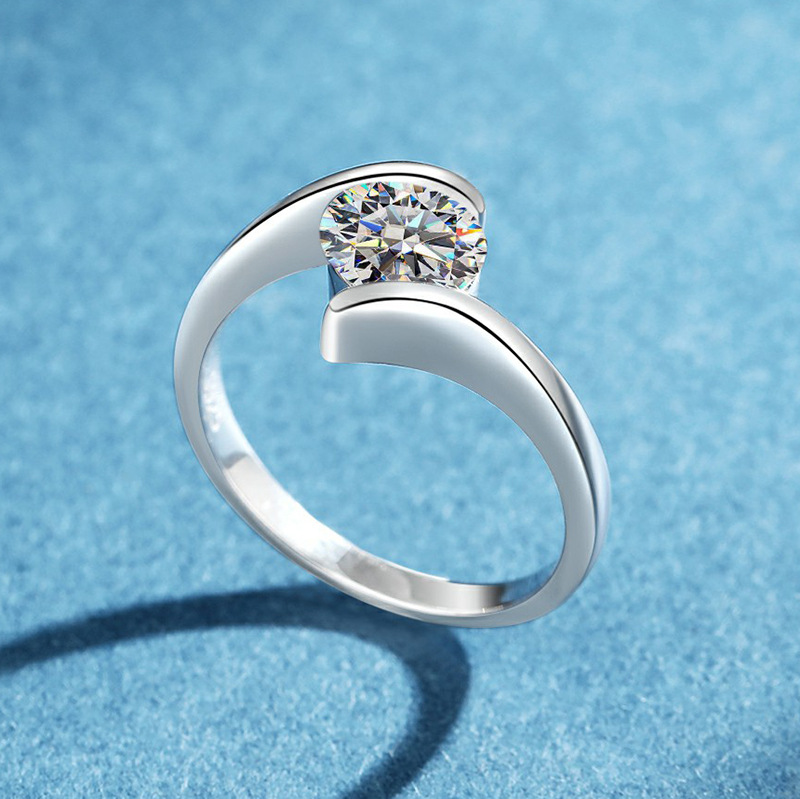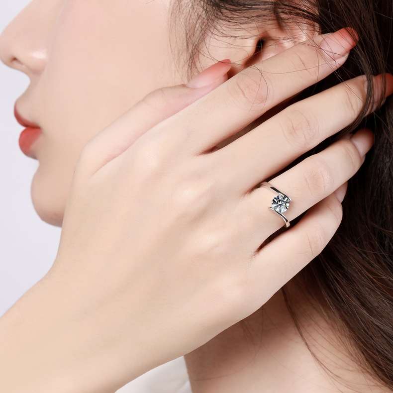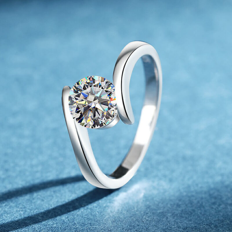 Selected round Moissanite engagement ring, set in a 925 sterling silver ring setting. The sparkling fire is eye-catching, no matter what the occasion.
