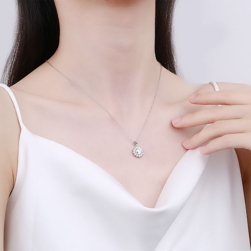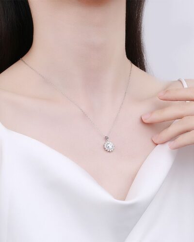 Round Solitaire Moissanite Necklace with 925 Sterling Silver. A single round Moissanite paired with a 925 silver chain creates a simple yet elegant design. The carefully selected, highly translucent Moissanite sparkles like a diamond!