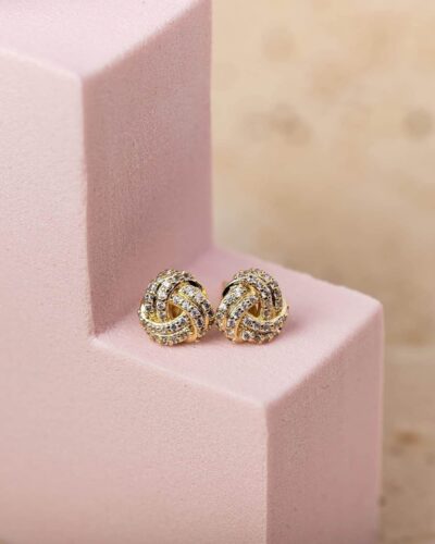 - The love knot stud earrings are made of high quality cubic zirconia stones, 925 sterling silver and plated with 14K gold , hypoallergenic , safe and durable.