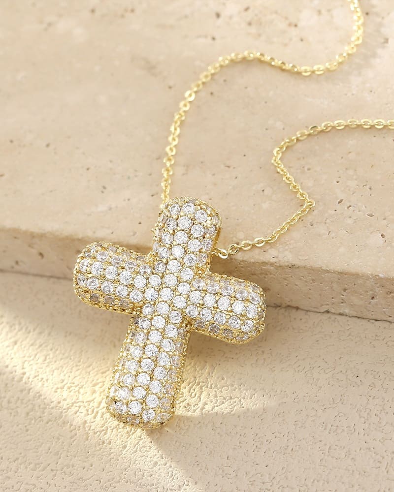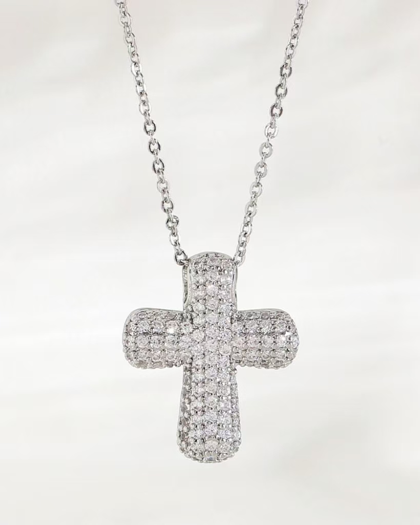 This cross pendant is designed of a statement bubble cross style, and it makes this cubic zirconia cross necklace interesting and trendy.