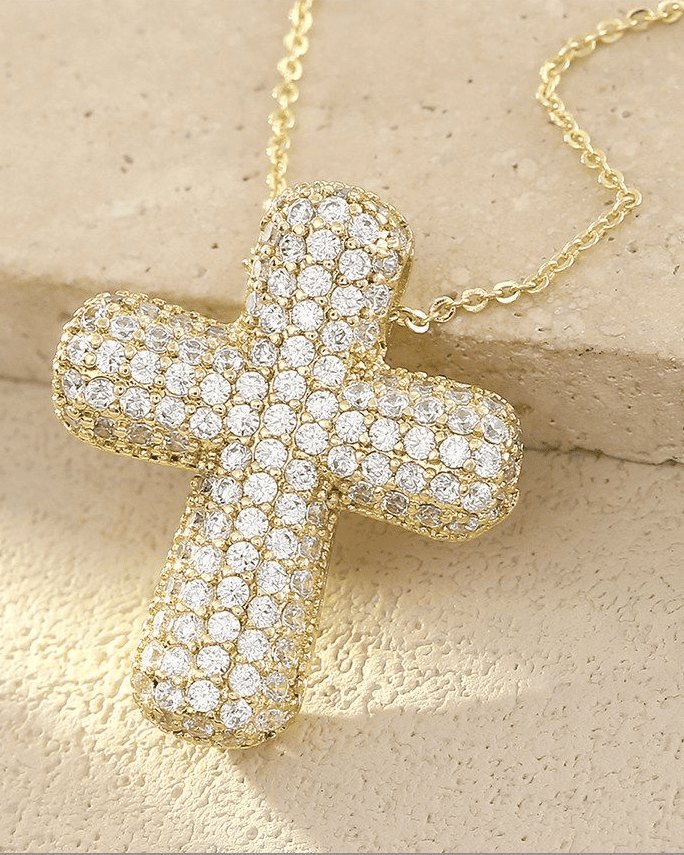 Adorned with sparkly cubic zircons, this statement cross necklace will add a brilliant touch to your outfit and be a highlight of your look!
