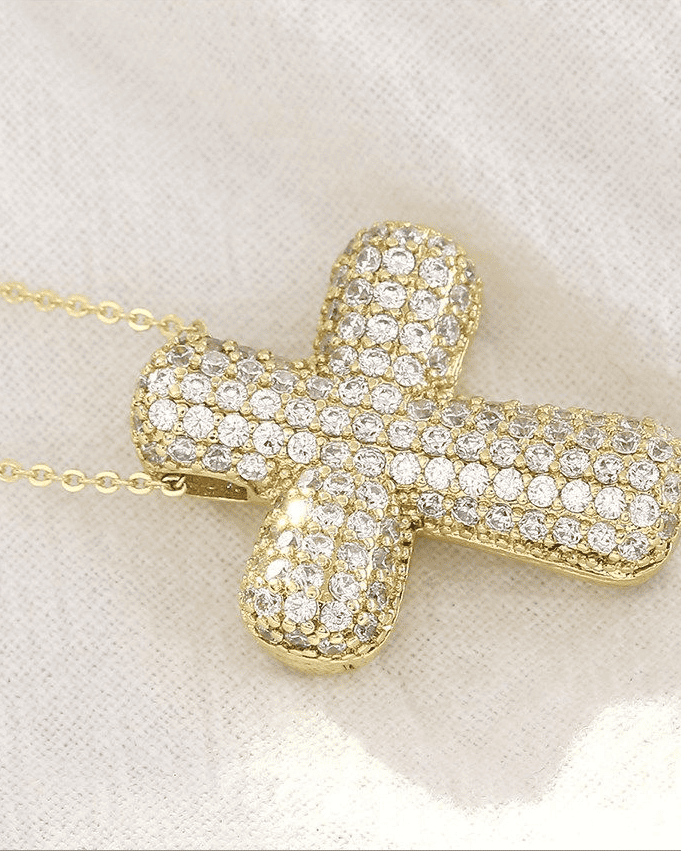 Gold Cubic Zirconia Statement Bubble Cross Necklace