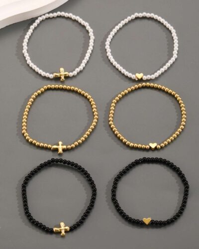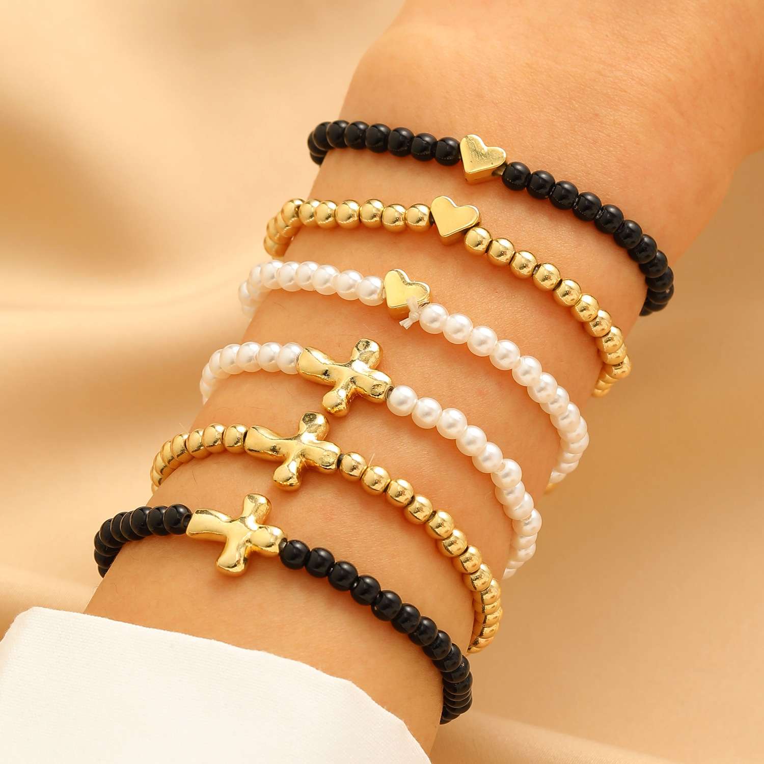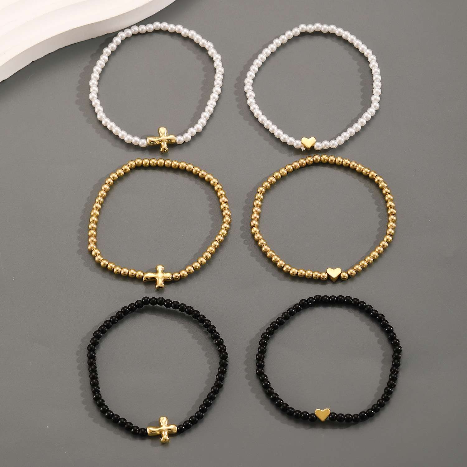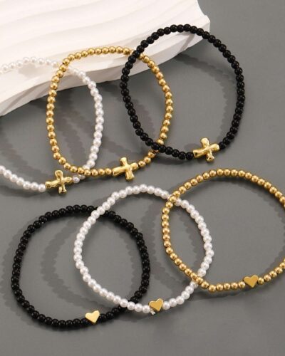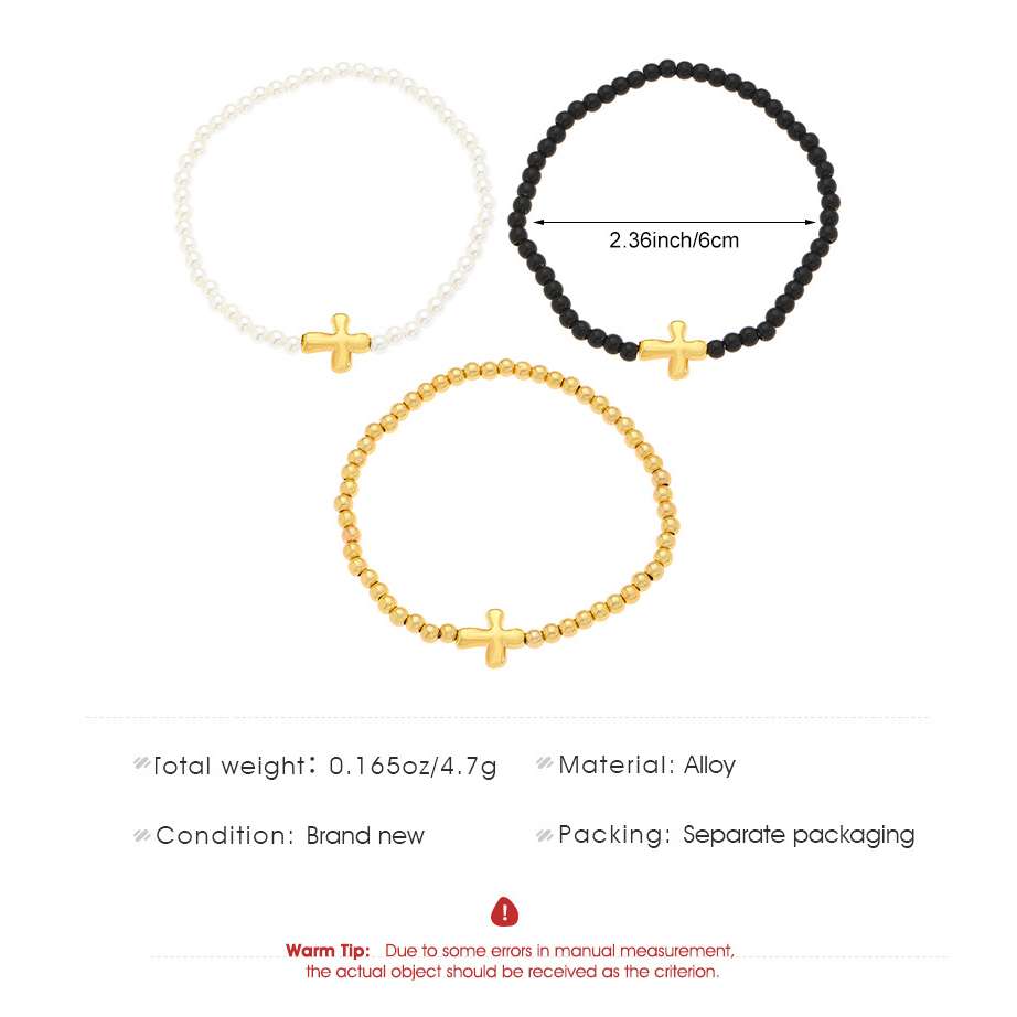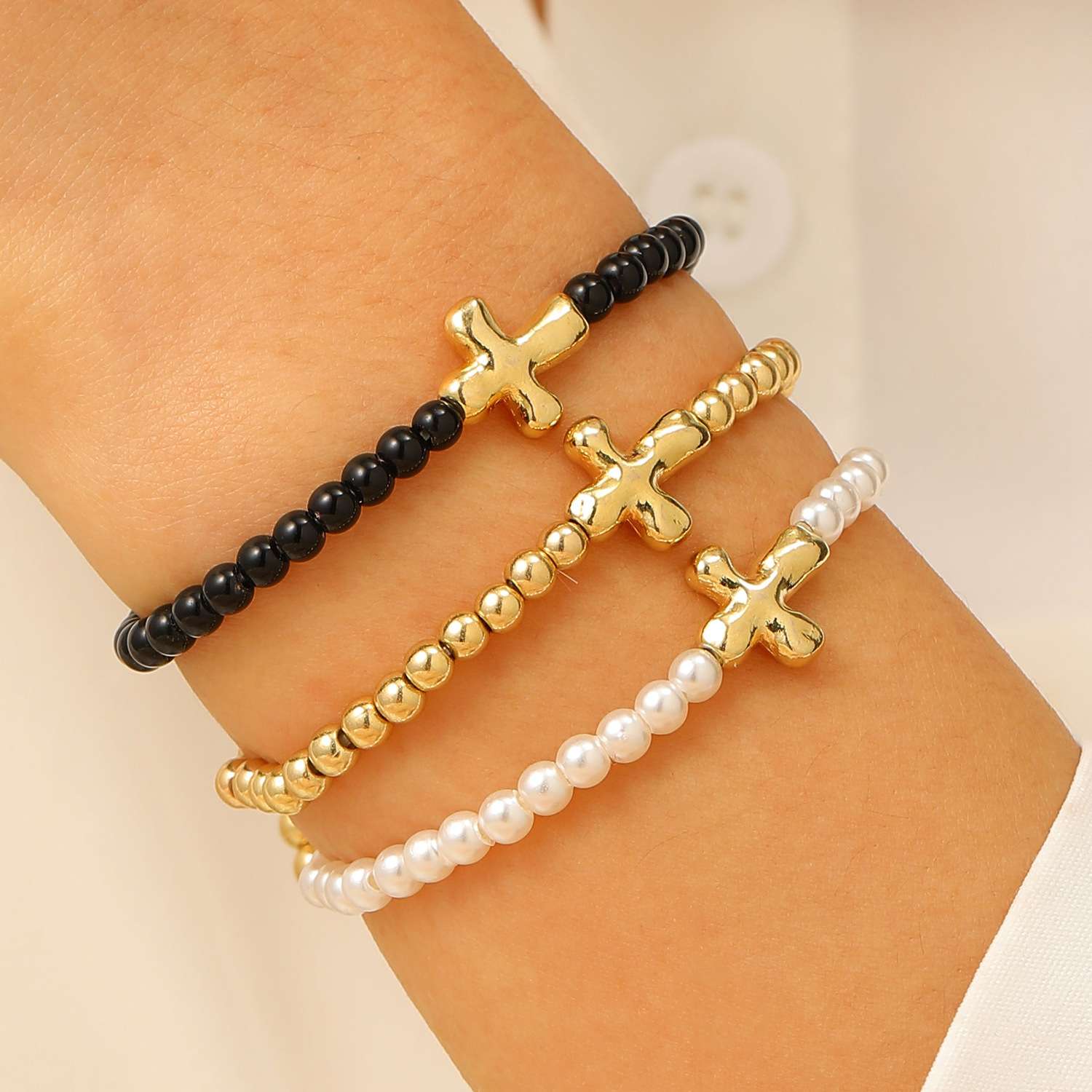 Combine cross elements with beads to create a simple religious bracelet. Available in three colors, this set creates a unique look whether worn alone or stacked.
