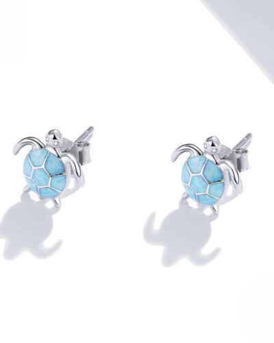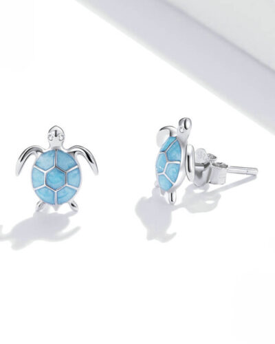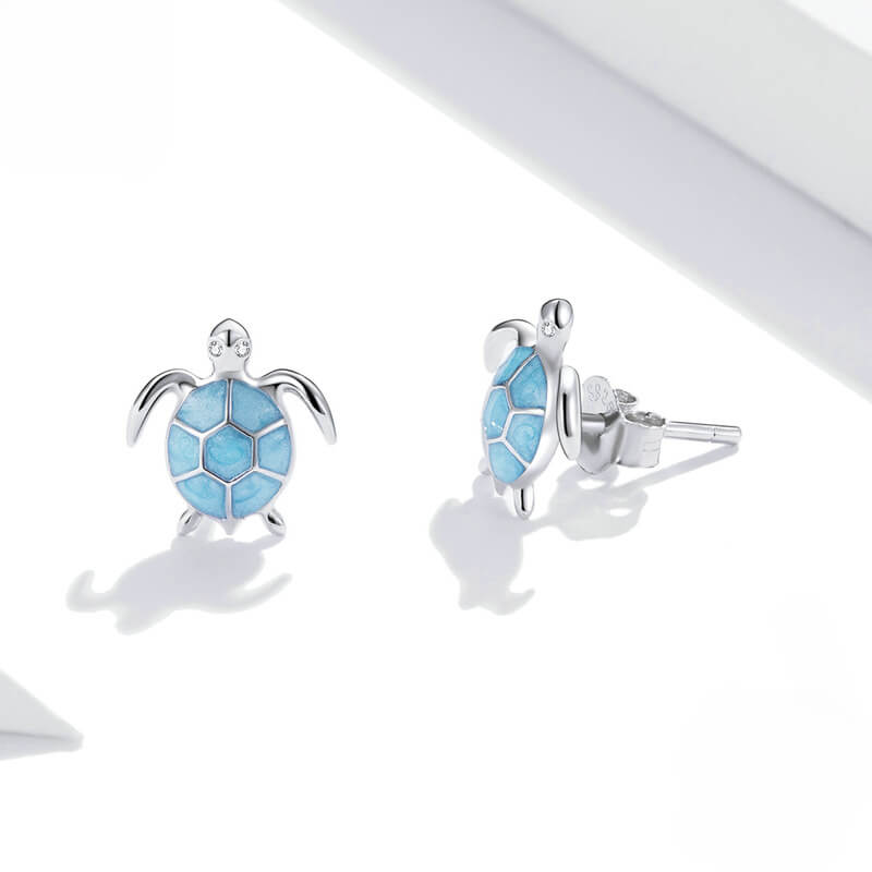 Blauwe Zeeschildpad Oorbellen Studs 925 Sterling Zilver