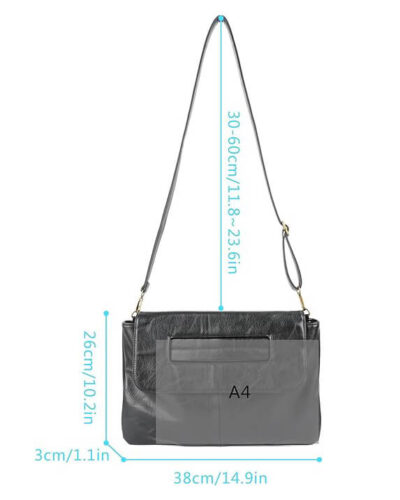 Designed for flexibility, this bag shines with its dual-use structure: it works beautifully as a sleek clutch, perfect for tucking under your arm at meetings, and comes with a removable, adjustable 47.24” shoulder strap.
