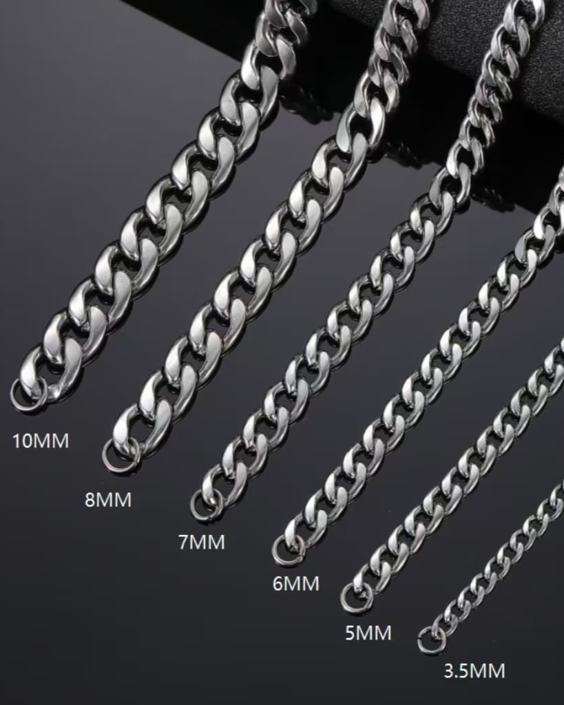 High Polish Stainless Cuban Chain Wholesale✨. Made from highly polished stainless steel, this high-quality Cuban chain is waterproof and corrosion-resistant, ensuring durability and a brilliant shine.