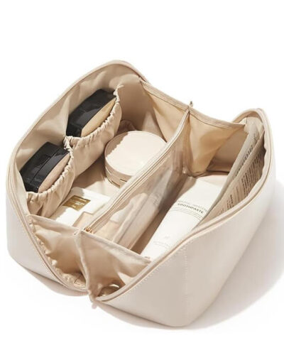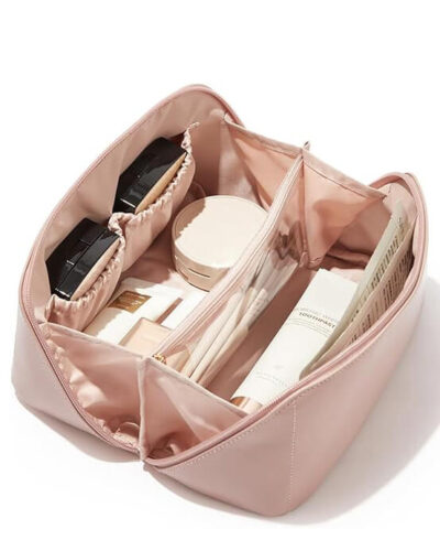 This makeup bag is flat design allows full opening, giving you a clear view of all items. It closes effortlessly when you’re ready to head out.