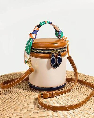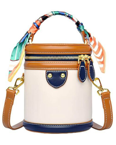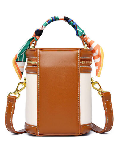 Crafted entirely from durable, fashionable faux leather, this cylinder bucket bag boasts a sleek cylinder bucket shape that feels both timeless and on-trend, elevated by a eye-catching colorblock pattern that adds a playful.