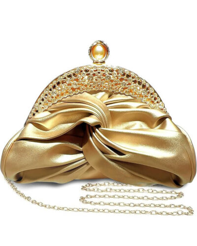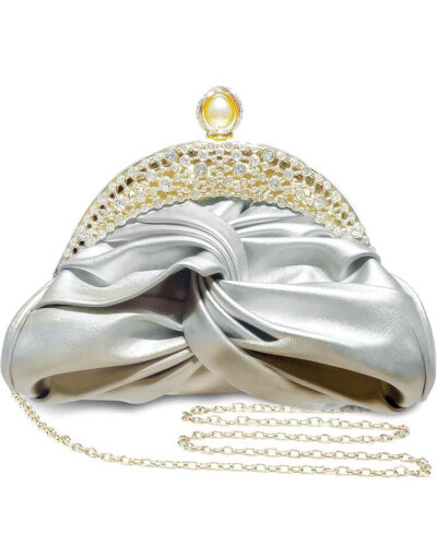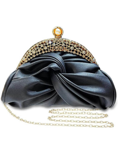 Available in gold, black, white, and silver, this clutch features a unique pearl buckle and chain strap. It seamlessly converts between a handheld clutch and a crossbody bag, adapting to diverse occasions with effortless charm.