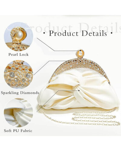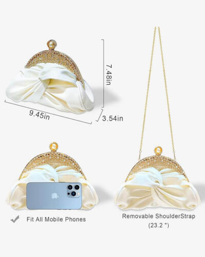 This wedding purse bag boasts a sleek, compact appearance while offering ample storage. It easily fits daily essentials like your phone, keys, credit cards, lipstick, and facial tissues—perfect for parties and evening outings.