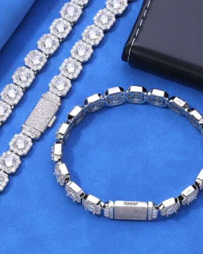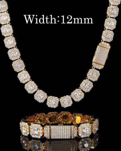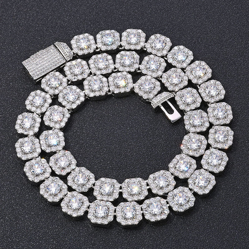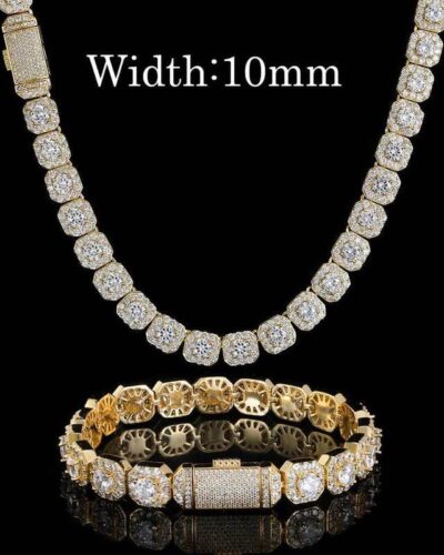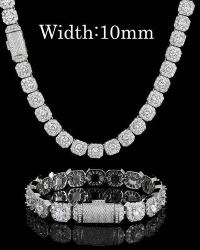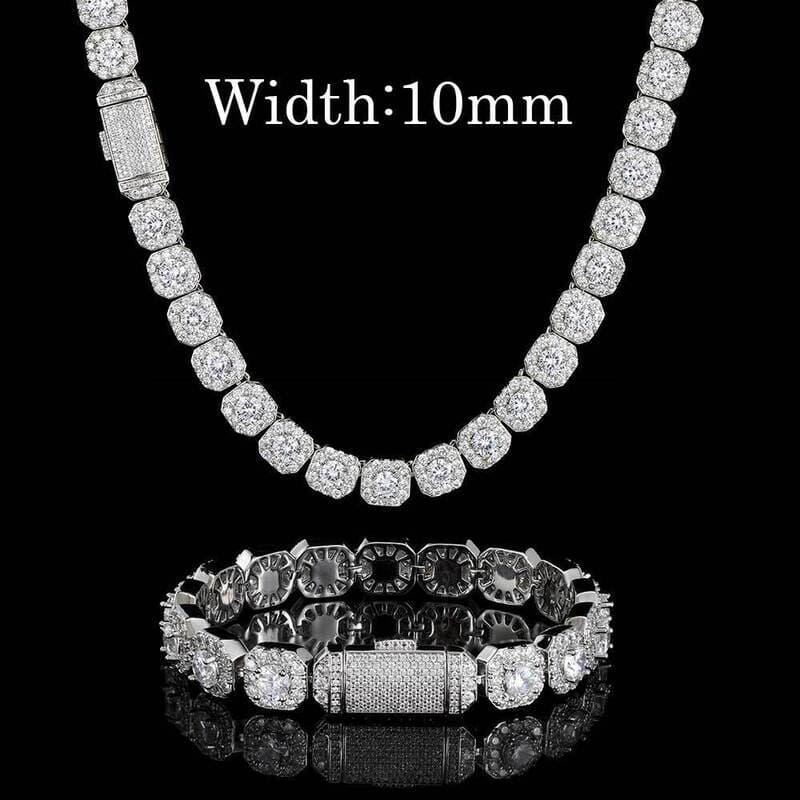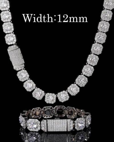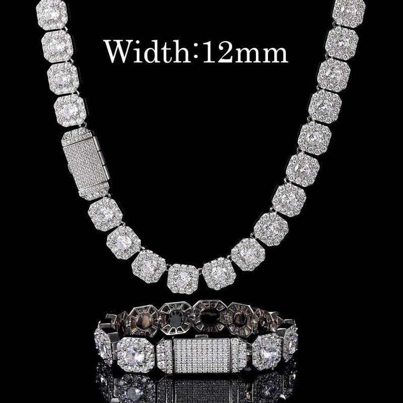 10MM/12MM Square Diamond CZ Tennis Necklace Bracelet Hip-hop