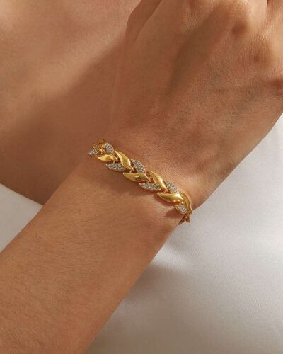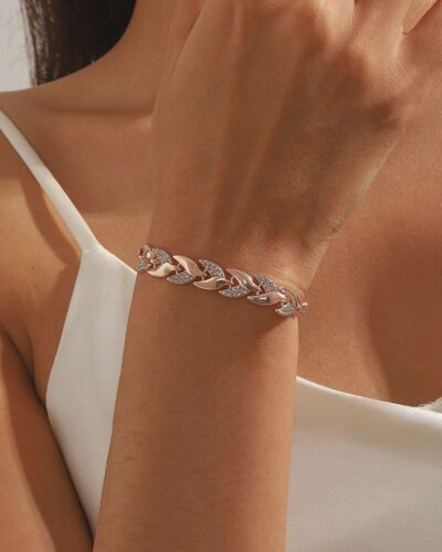 A three-dimensional mermaid tail bracelet crafted from exquisite alloy and studded with sparkling rhinestones exudes an elegant and mysterious aura.