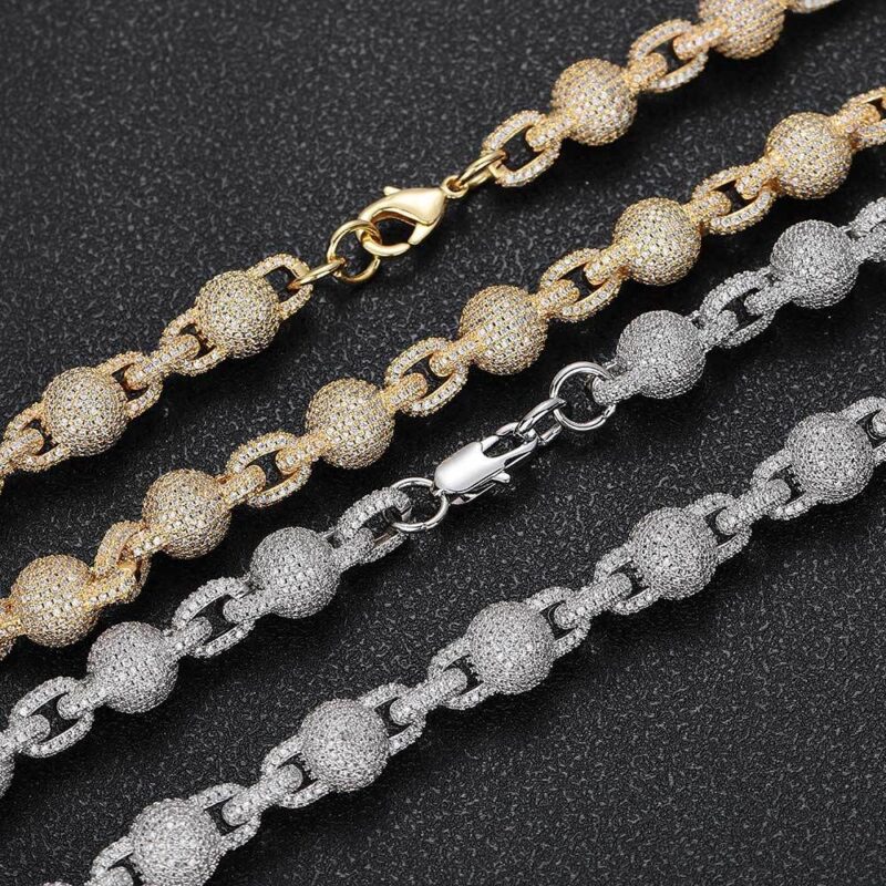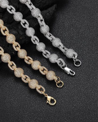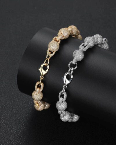 10.5mm Round Mens Zircon Bracelet Wholesale. It features a chain with a round ball design, inlaid with zircon, adding a touch of personality. The thick design fits the male wrist perfectly and enhances the tough aura.