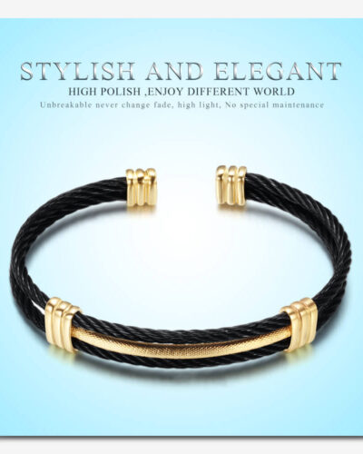 Bransoletka ze stali nierdzewnej z czarnym obsydianem Minimalistyczny styl punkowy