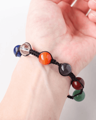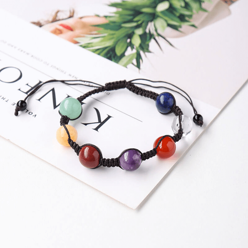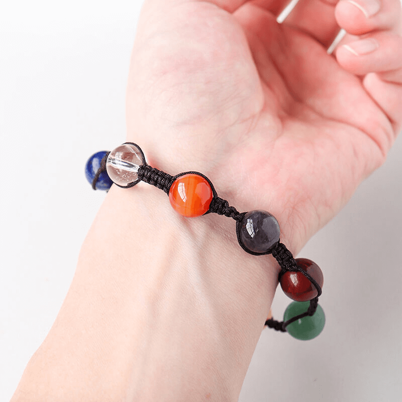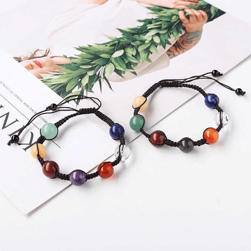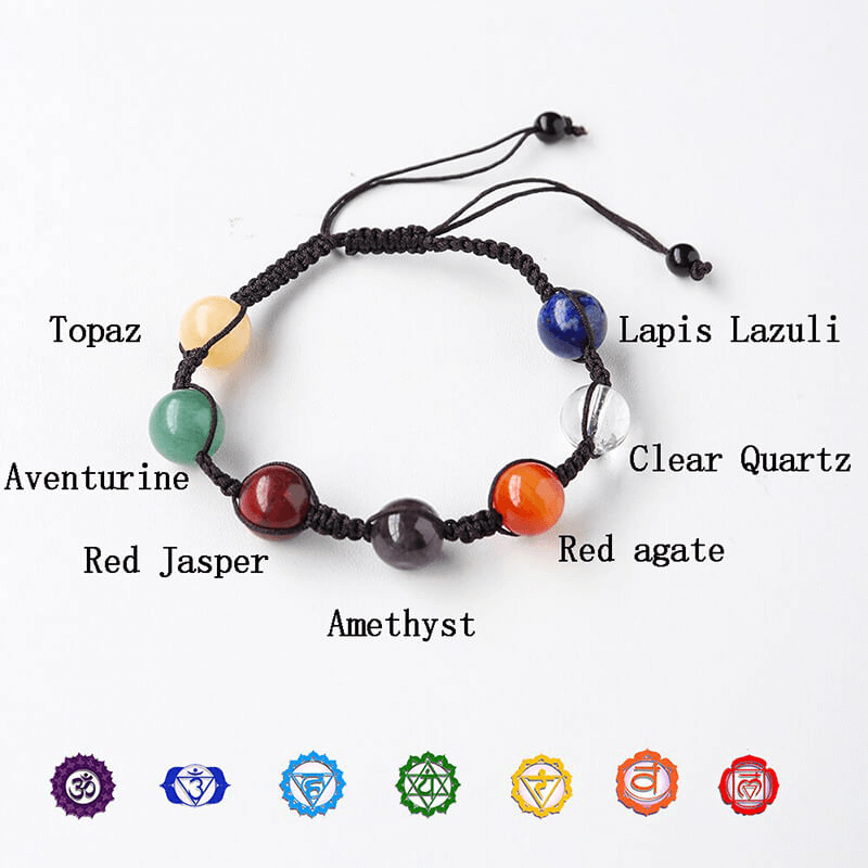 - The 7 chakra energy beaded woven bracelet is made of 7 types of crystals: amethyst, green aventurine, clear quartz, red agate, red jasper, lapis lazuli, and topaz. Each has its own properties and benefits, so you can enjoy various protection by wearing this bracelet.