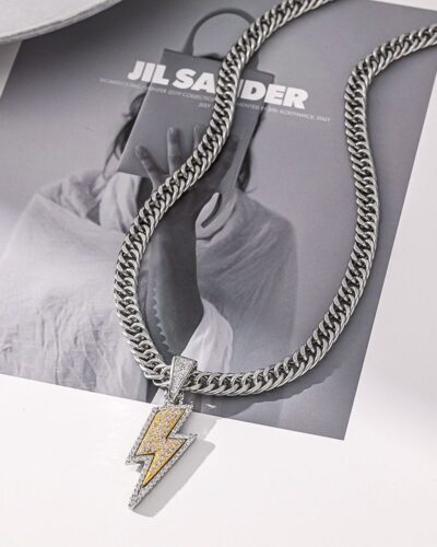 Men’s Cuban Chain Necklace with Lightning Pendant