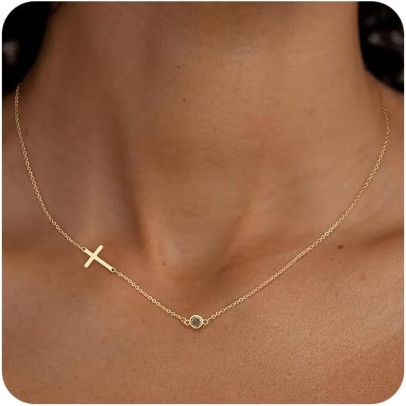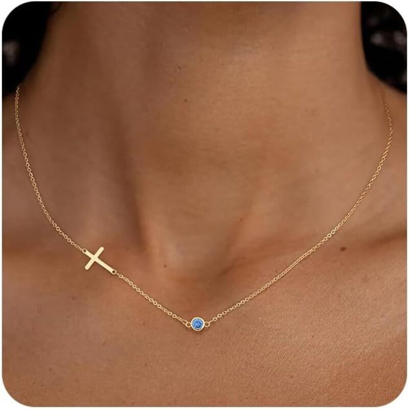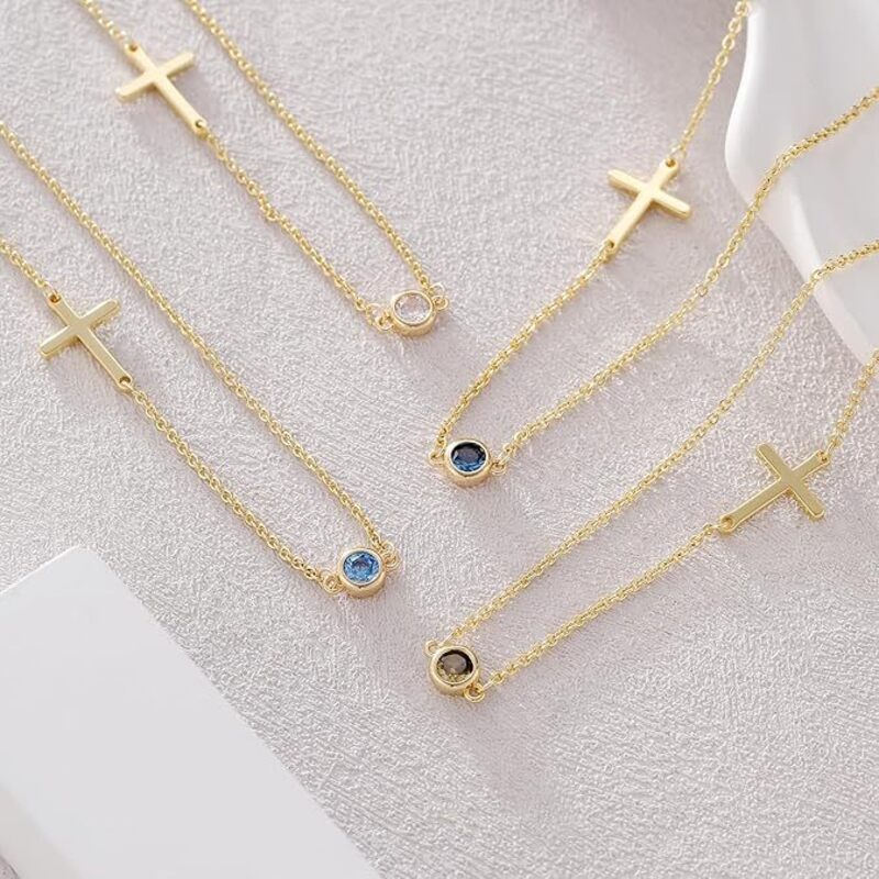 Combining cross and birthstone elements, this cross birthstone necklace becomes more fashionable and trendy.