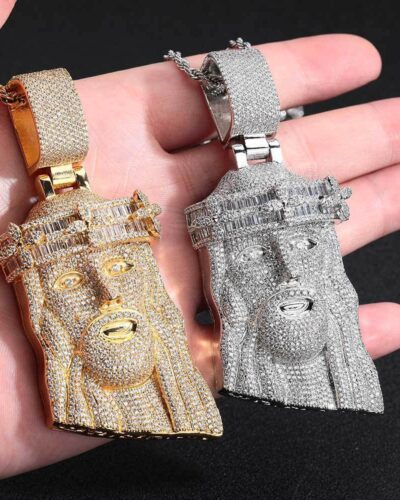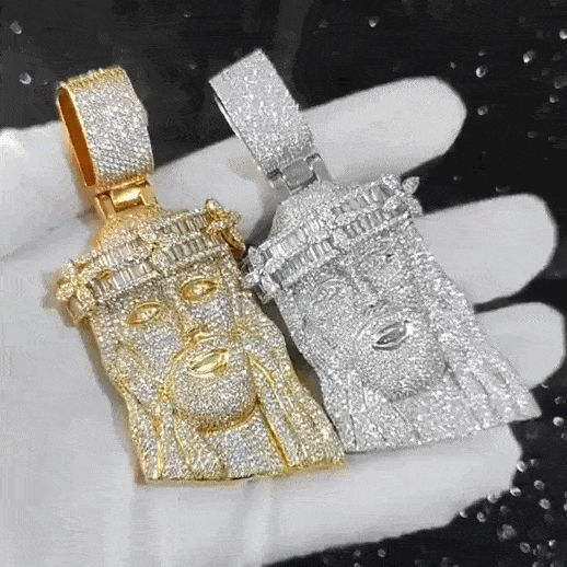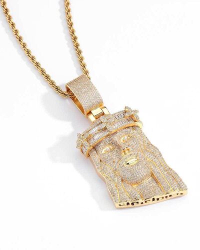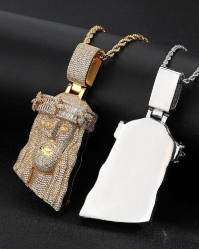 - Eye-catching iced-out large Christ head pendant inlay with crystal 3A+CZ diamond looks shining with amazing lights.