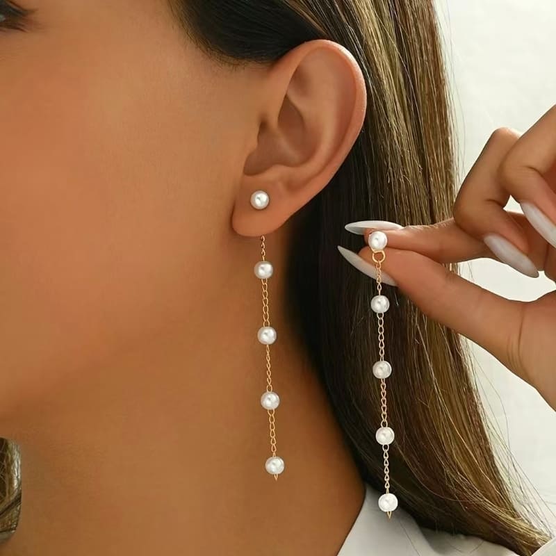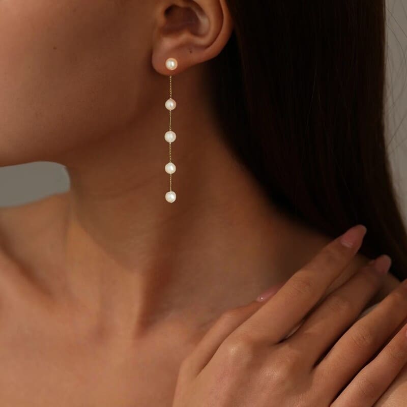 - Minimalistyczne długie kolczyki z perłami dla kobiet