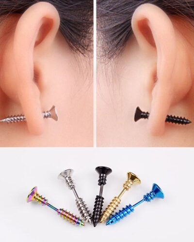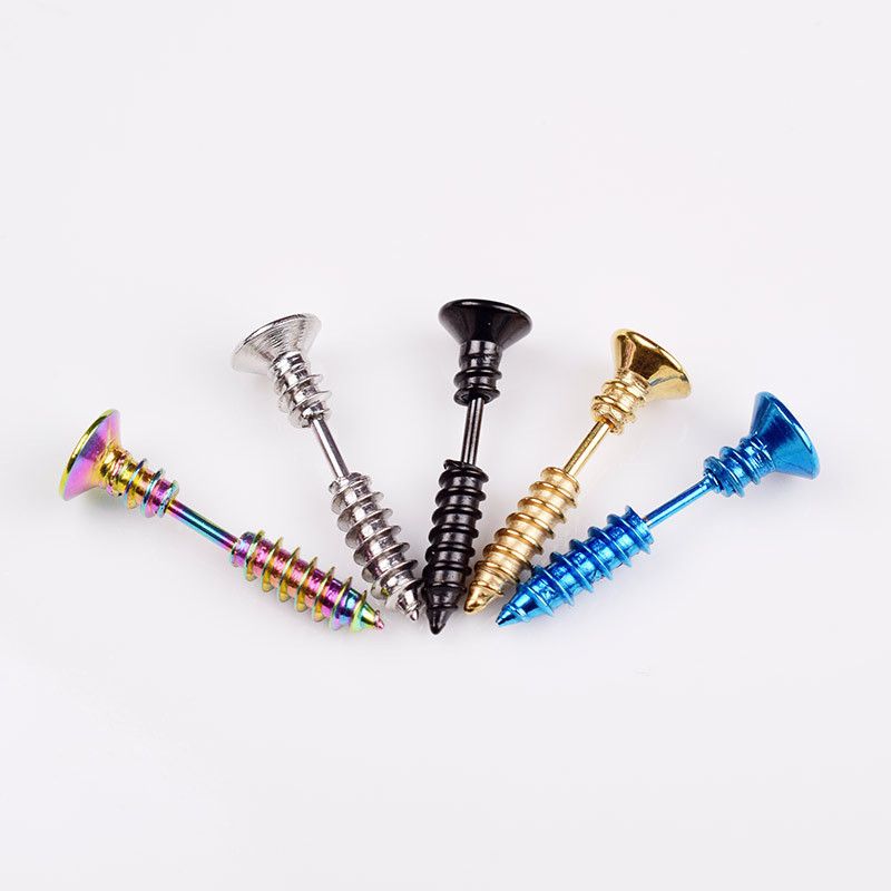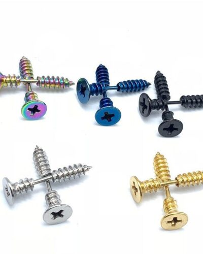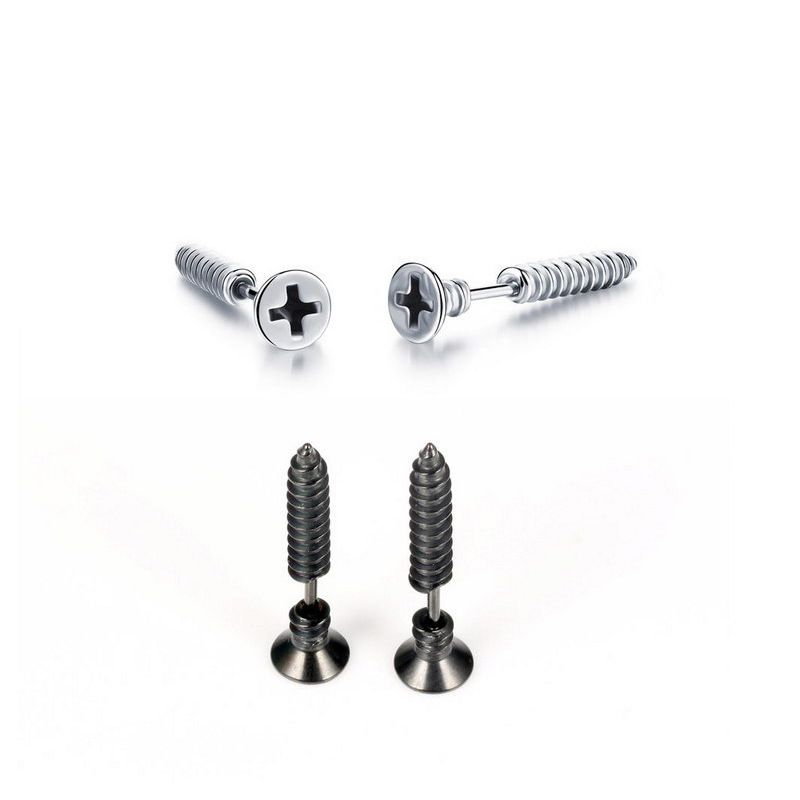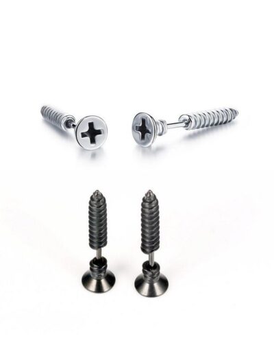 Screw stainless steel stud earrings for men. Made of high-quality stainless steel, designed with a screw as the prototype, and full of personality. Perfect for a variety of clothing styles, including workwear. Hypoallergenic and non-fading.