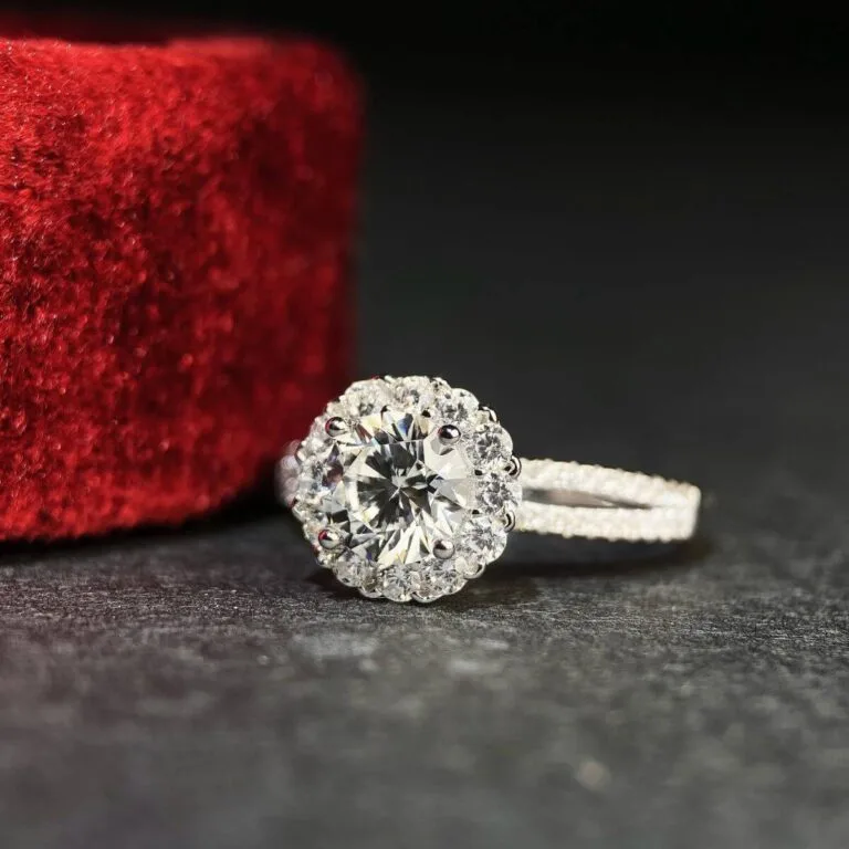 Features of the Round Halo Moissanite Engagement Ring