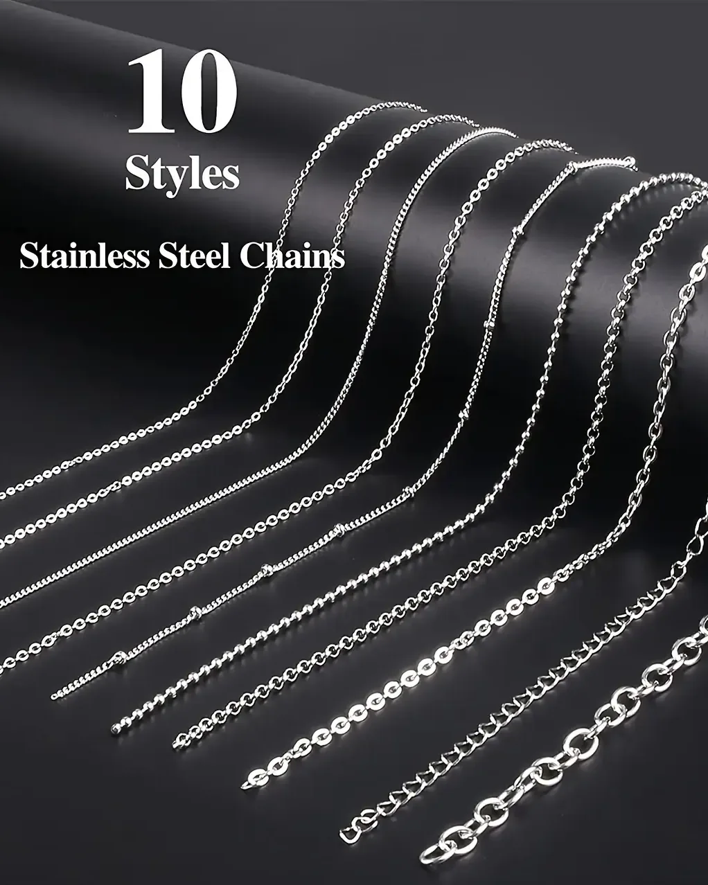 - 74 feet stainless steel chains for jewelry making with 10 types.