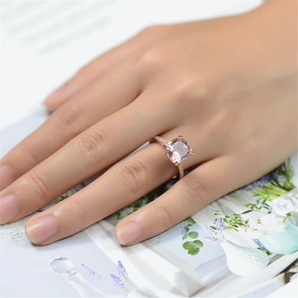 Romantic 2CT Pink Cushion Cut Moissanite Ring for Women Engagement Wedding