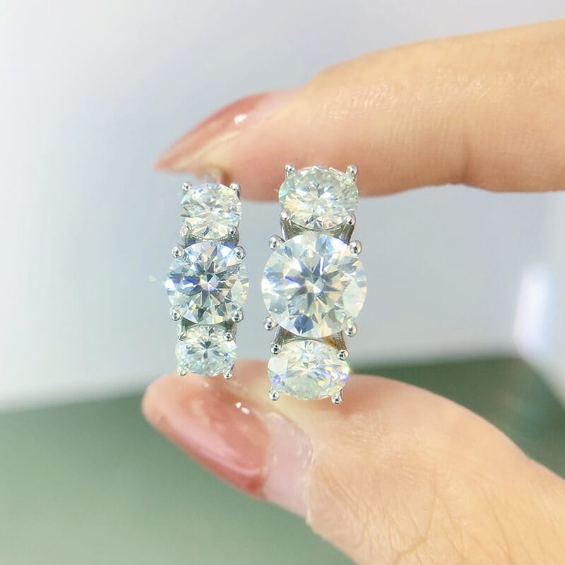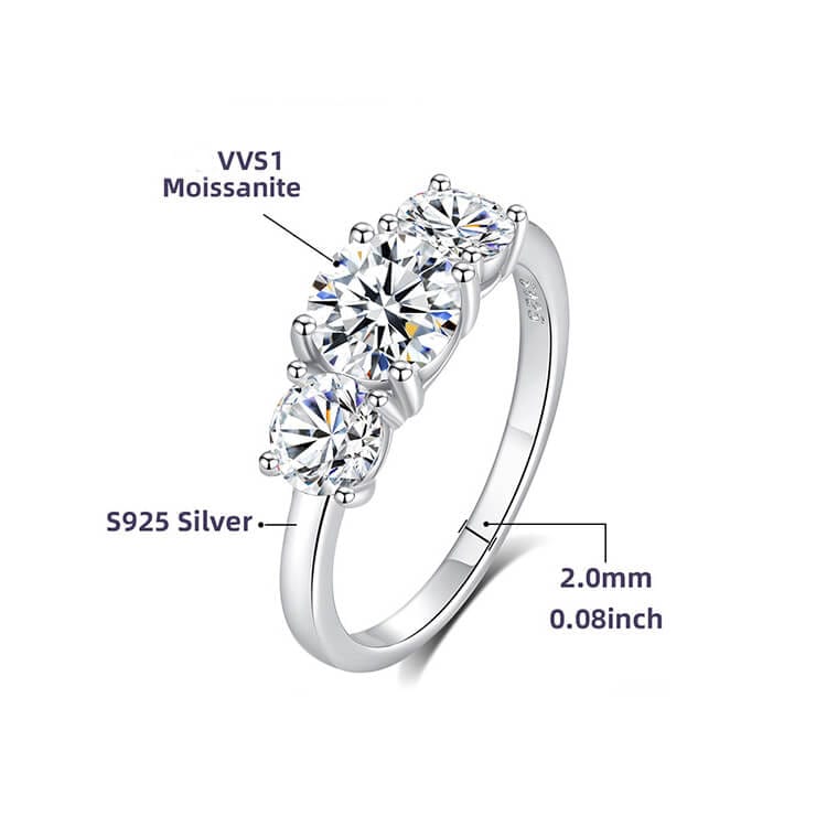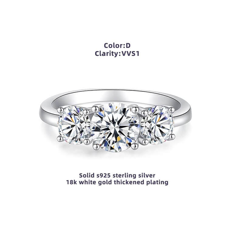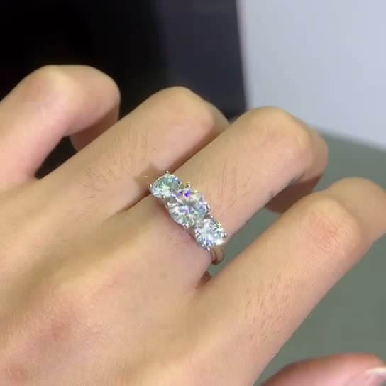 925 Sterling Silver Moissanite Ring With 3 Stone
