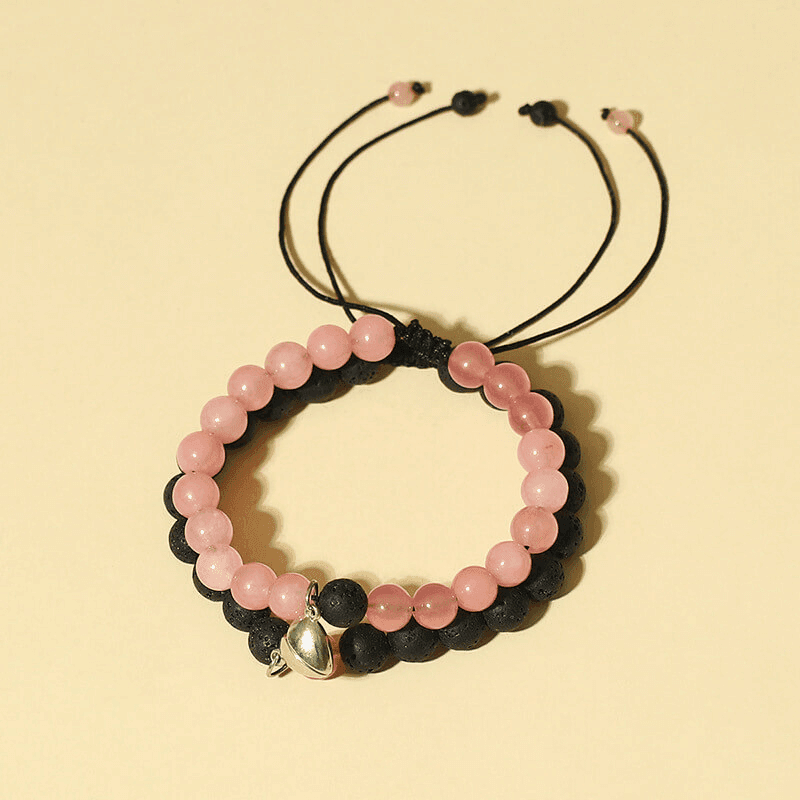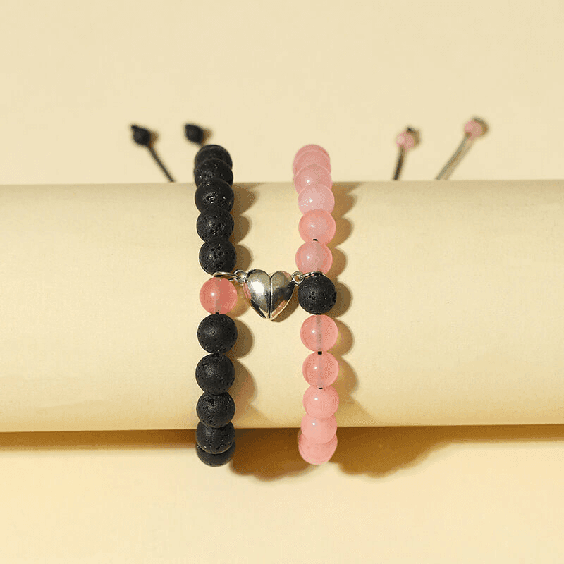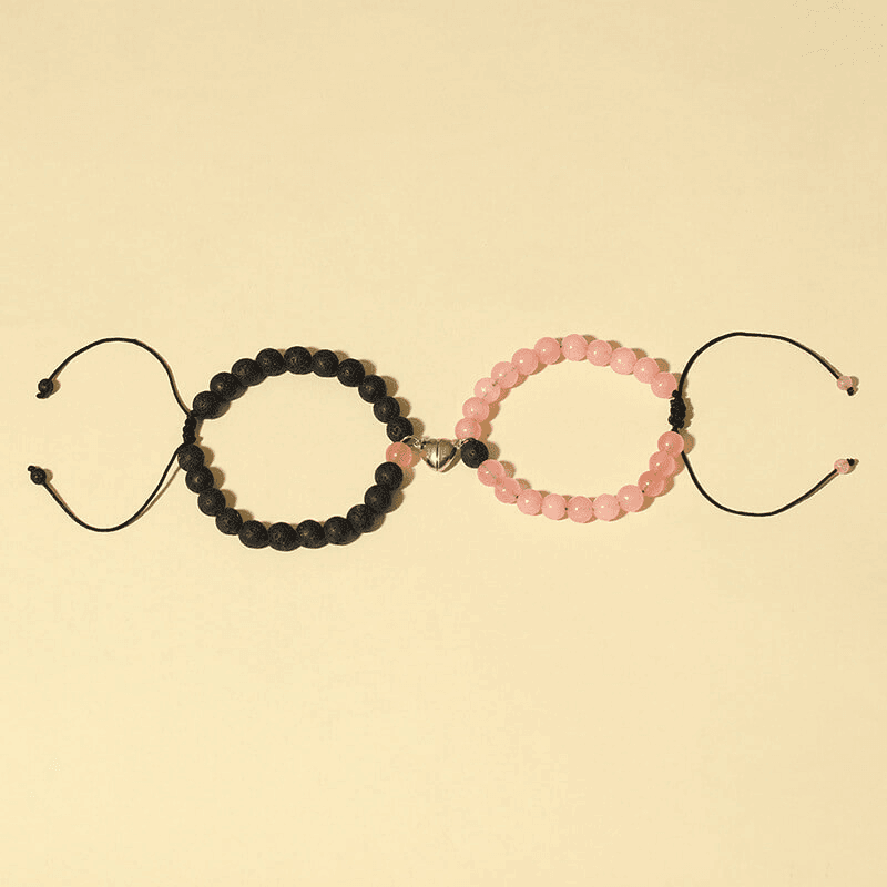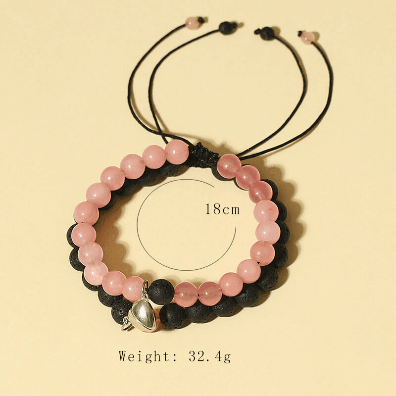 Magnetic Heart Black Pink Couple Beaded Crystal Bracelet Sets