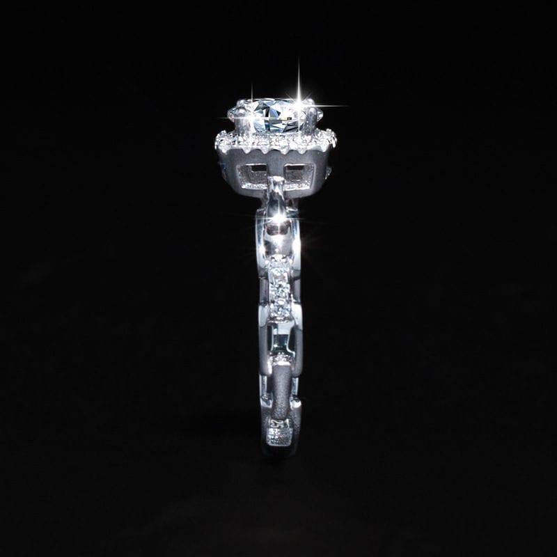 Wholesale 925 Sterling Silver Chain Link shaped Moissanite Ring. Adopting ⛓️a chain design, creating a unique industrial style, and a high-end feel. The ring body is made of S925 sterling silver, which conveys a sense of heaviness visually!