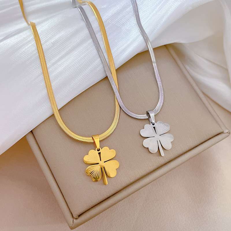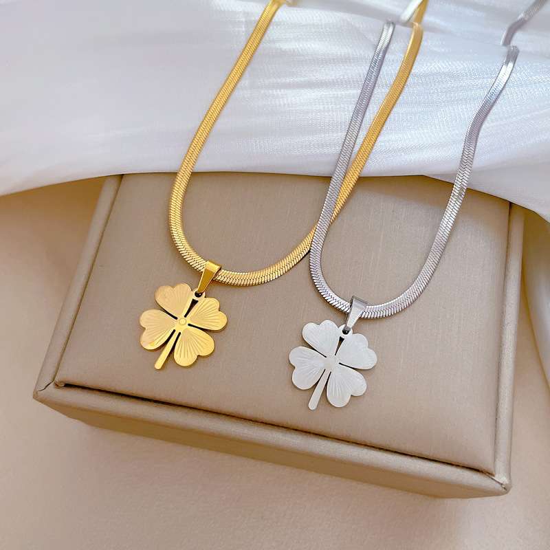 Elegant 4-Leaf Clover Pendant Stainless Steel Snake Chain