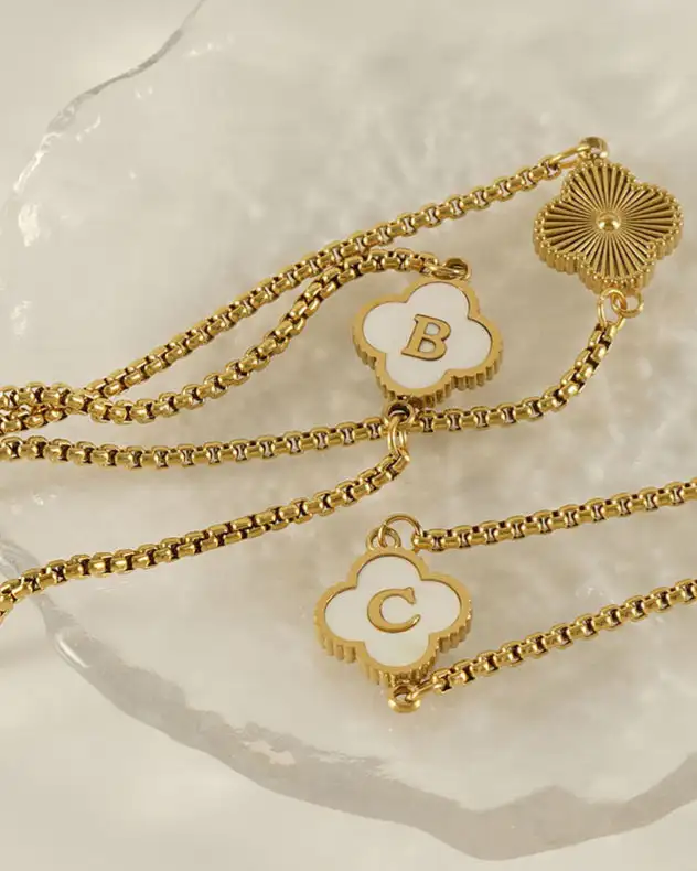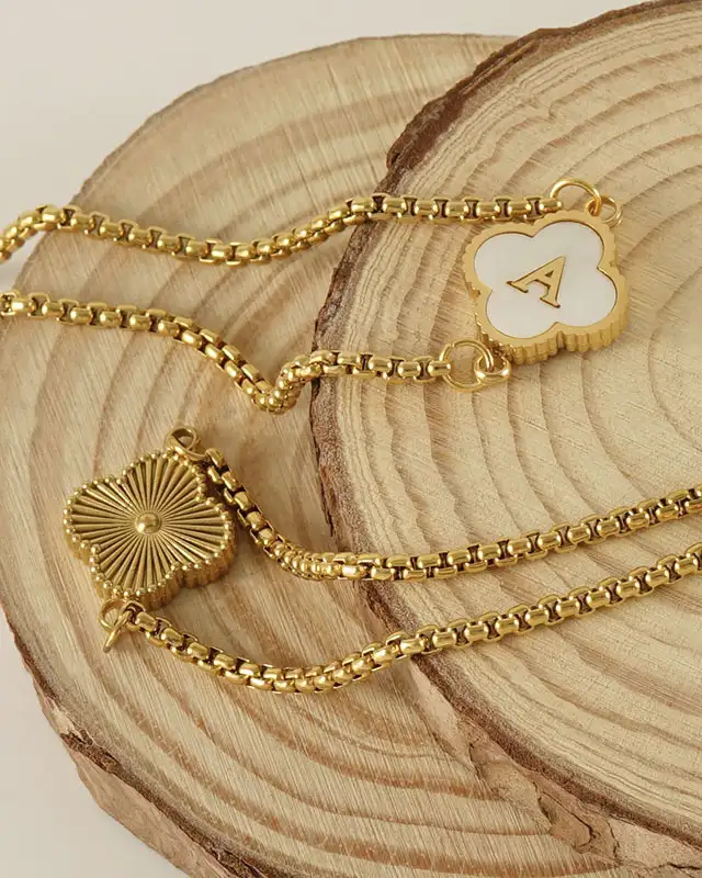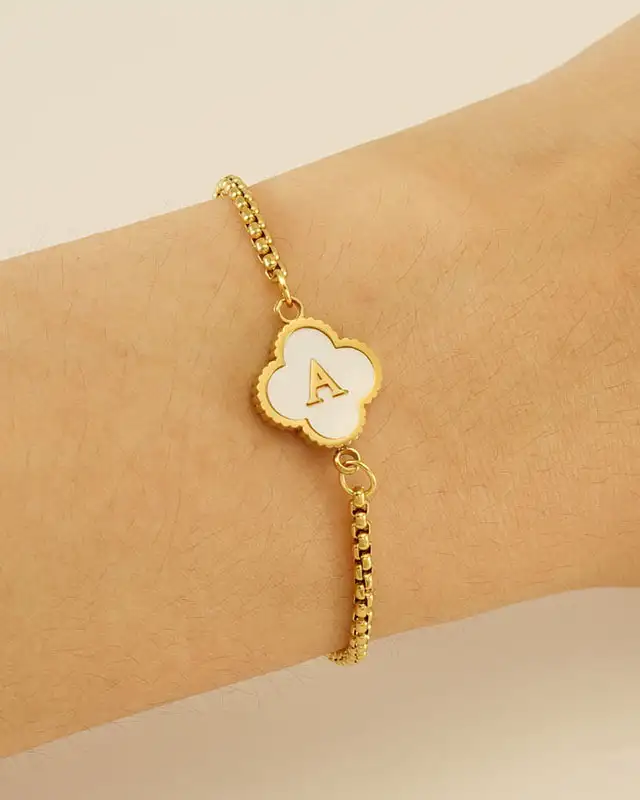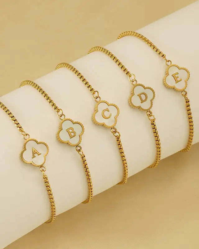 - This stainless steel initial bracelet features a four-leaf clover design🍀, seamlessly blending a symbol of luck with everyday jewelry. It empowers you throughout daily life and makes an ideal gift choice.