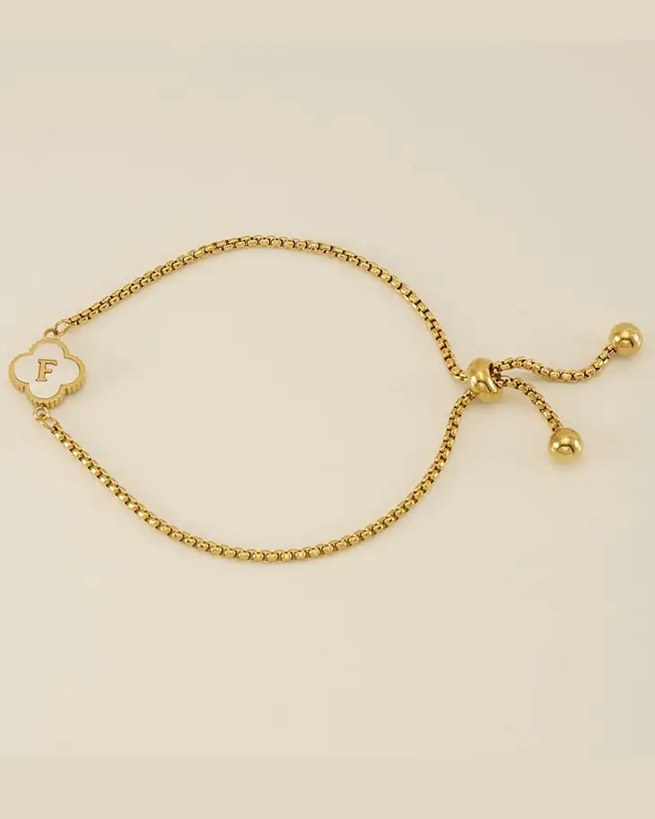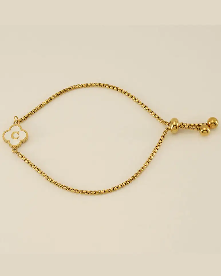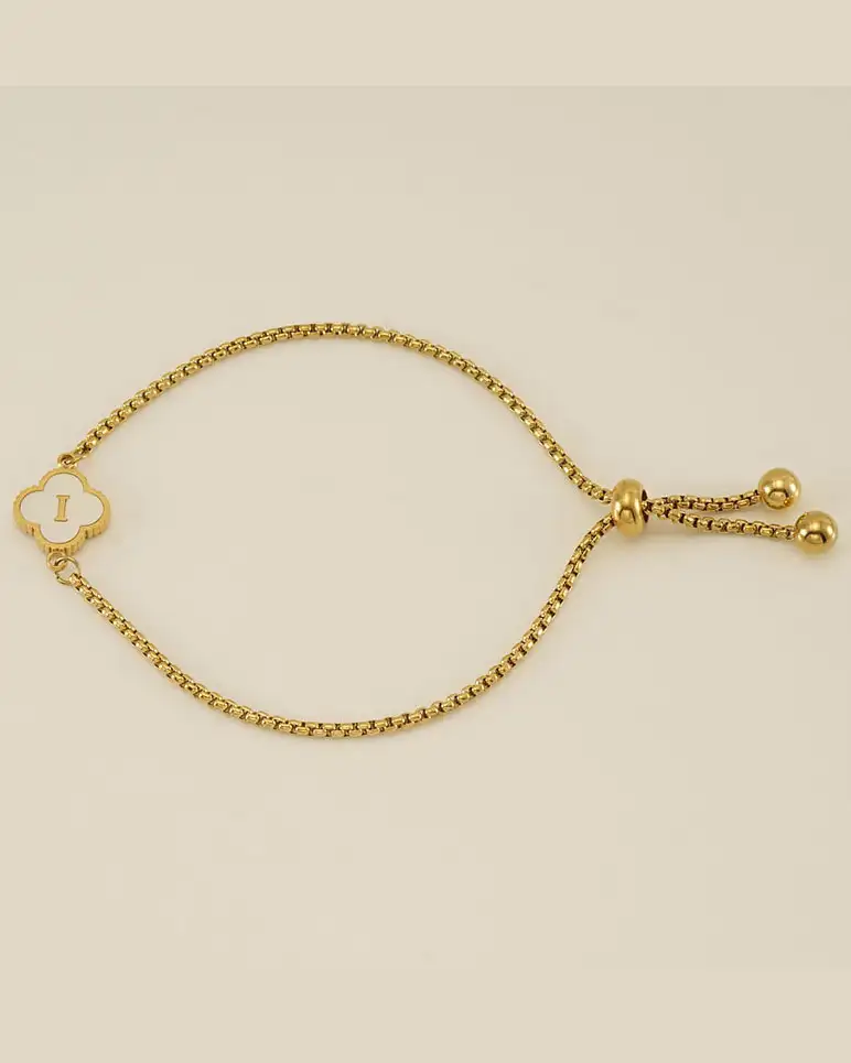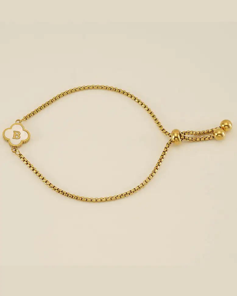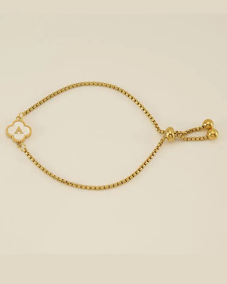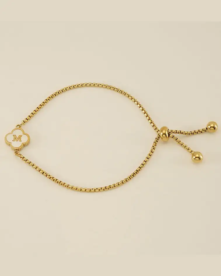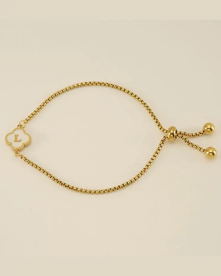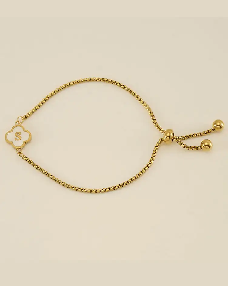 Dainty Four-leaf Clover Stainless Steel Initial Bracelet