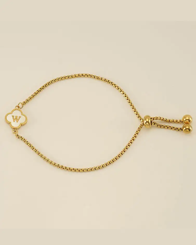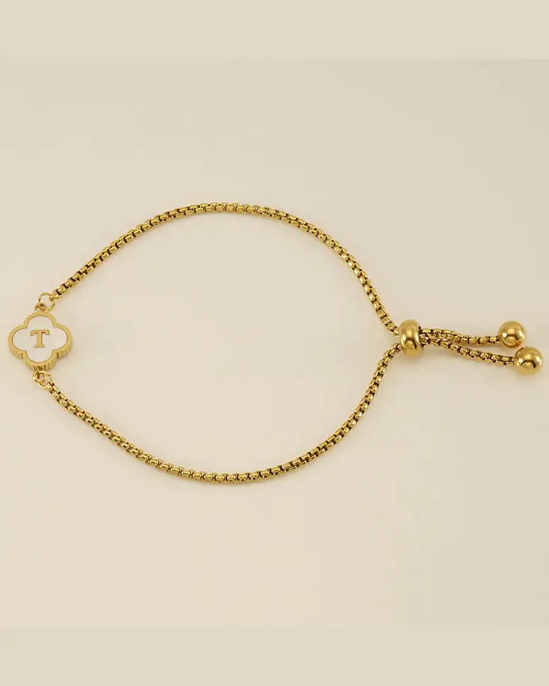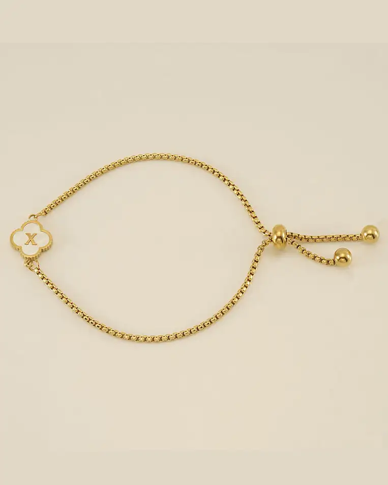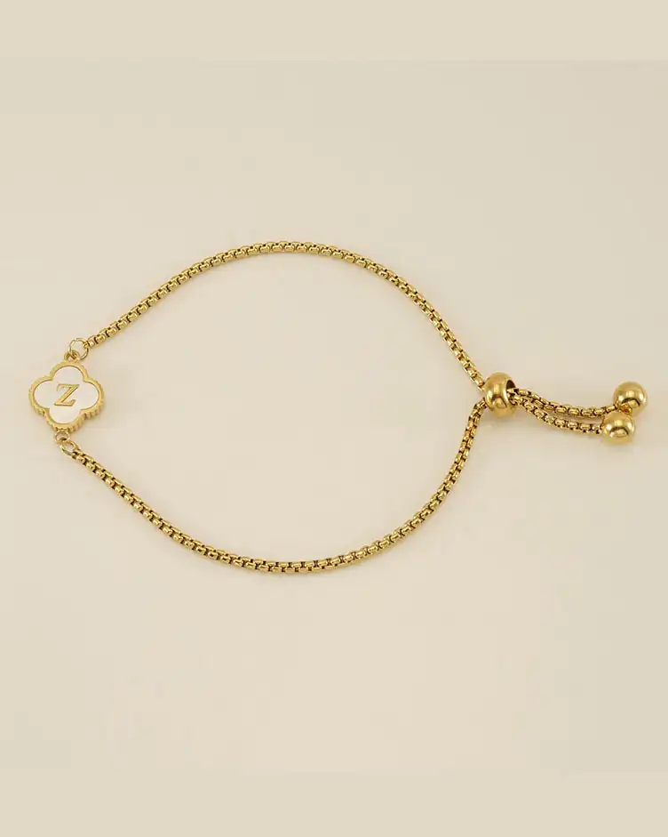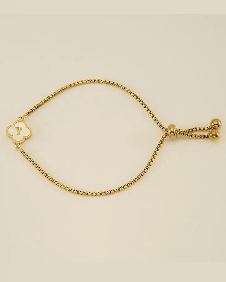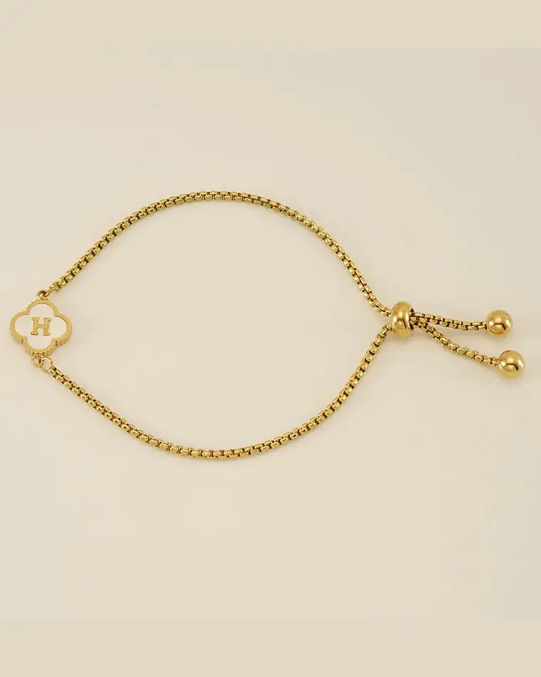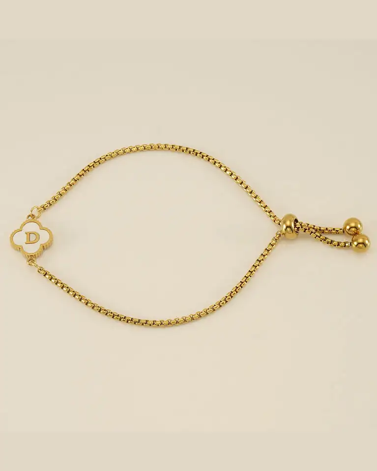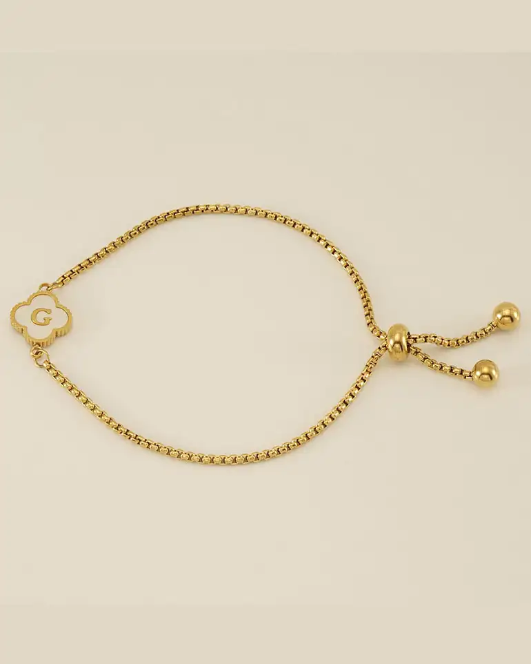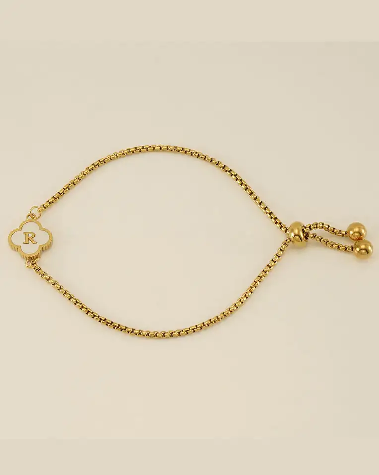 Dainty Four-leaf Clover Stainless Steel Initial Bracelet