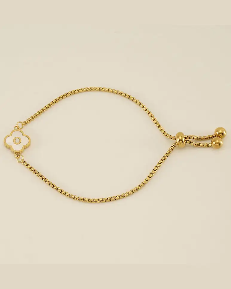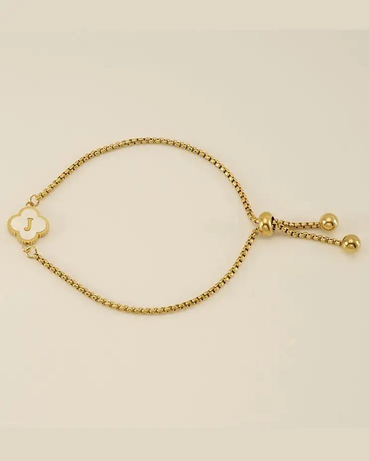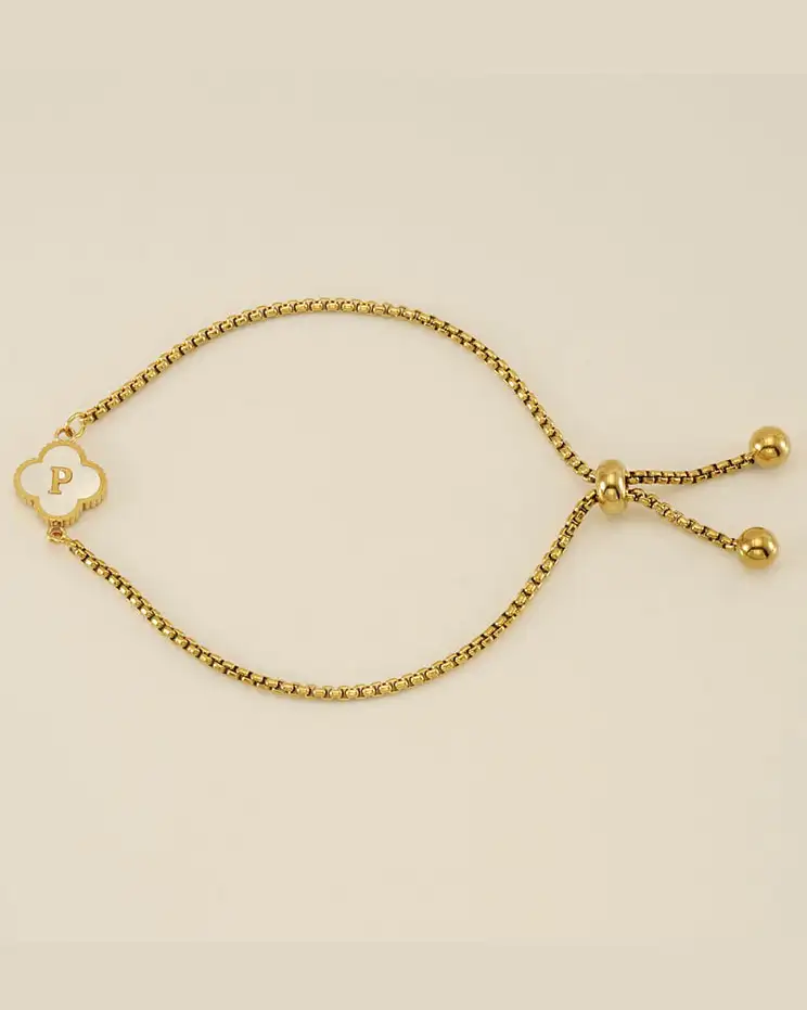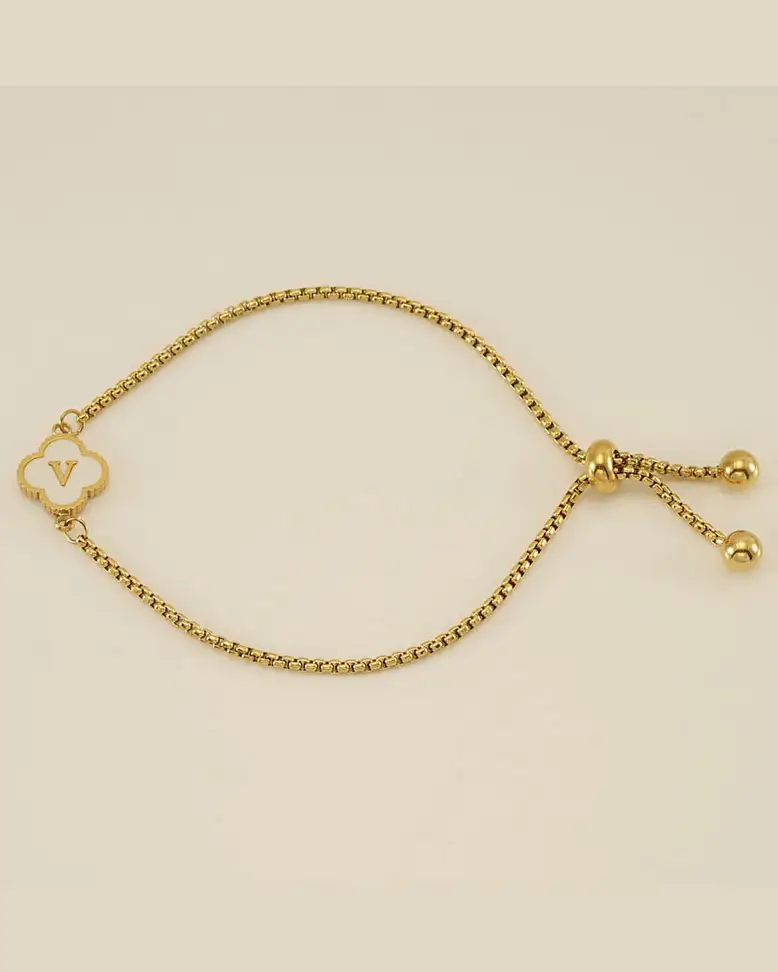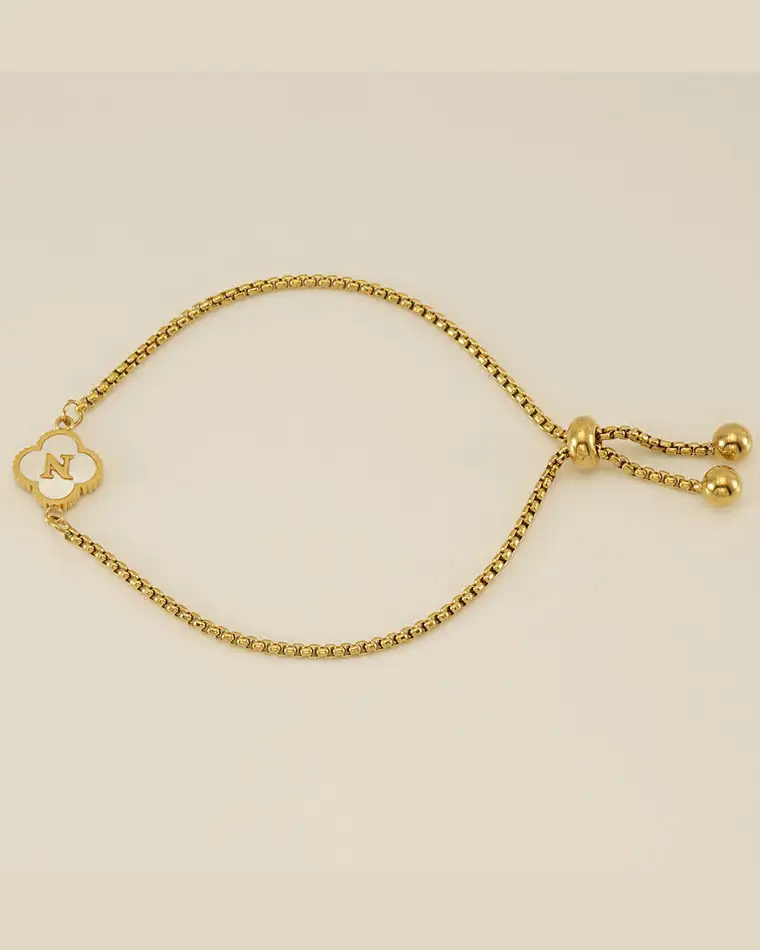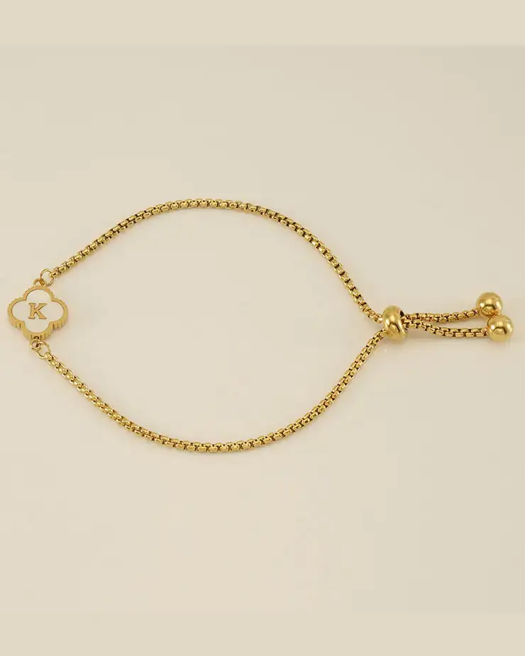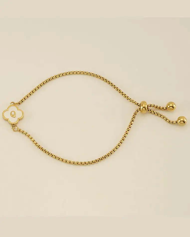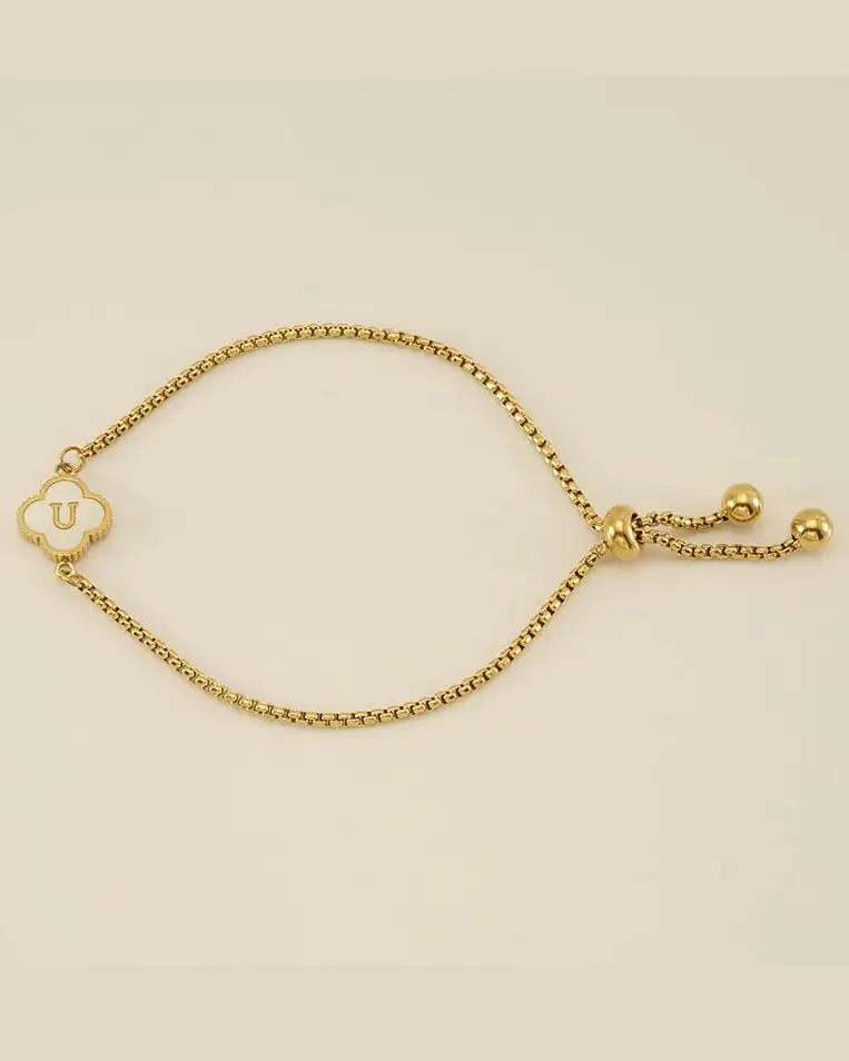 Dainty Four-leaf Clover Stainless Steel Initial Bracelet