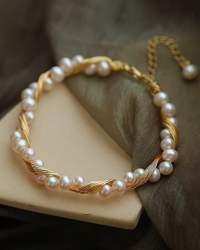 Winding Design for Artistic Flair: The winding design of the womens pearl bracelet adds an artistic touch, creating a captivating visual effect that wraps gracefully around your wrist.