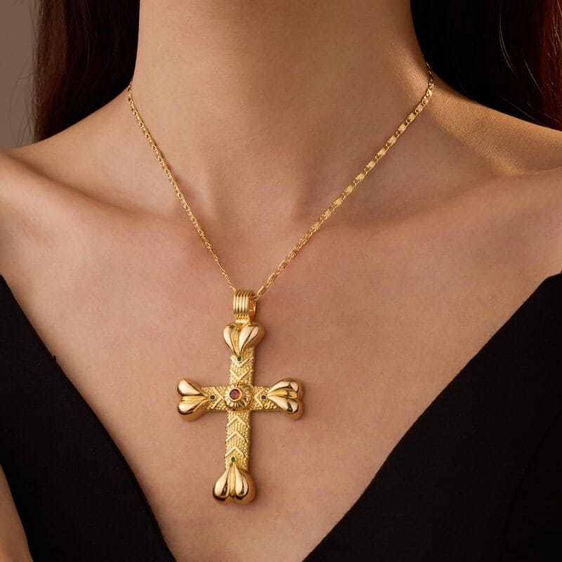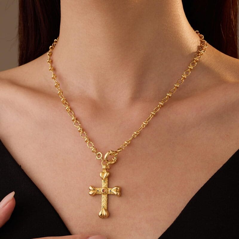 Processed of electroplating, the large gold cross necklace for women has shiny luster and good texture, which make this cross necklace comfortable and fashionable to wear.