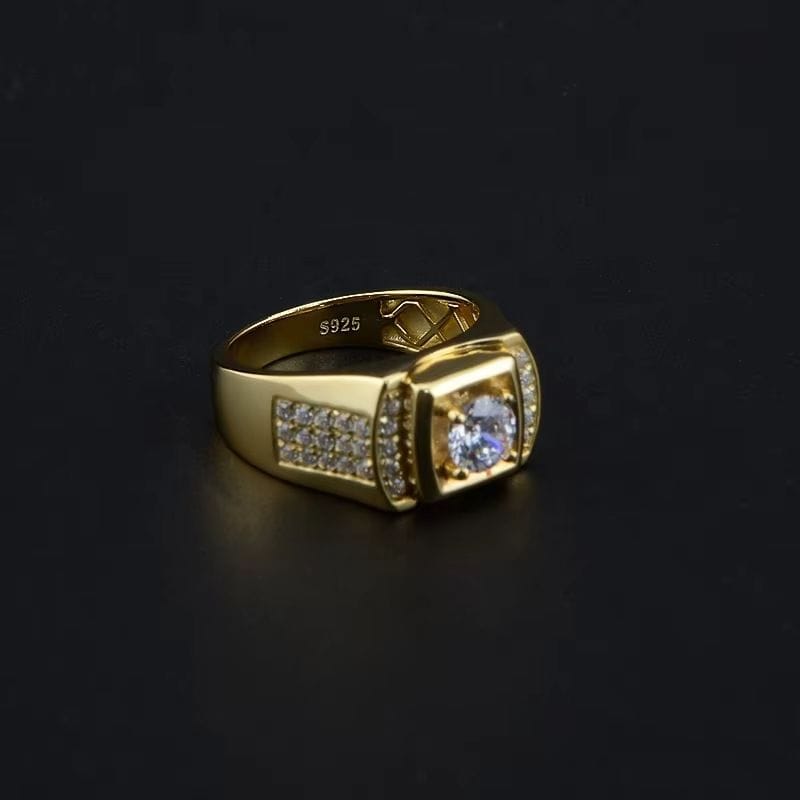 Men’s 18K Gold Plated Moissanite Ring S925 Sterling Silver Ring