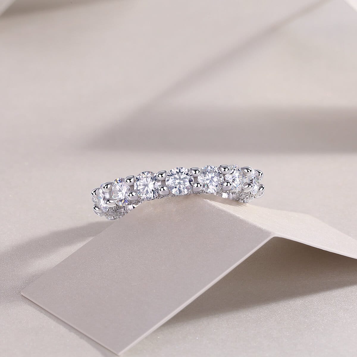 925 sterling silver pavé Moissanite eternity ring. The ring body is inlaid with multiple 3mm Moissanite stones, and the closed loop design symbolizes that love never stops. The simple design style highlights the wearer’s elegant temperament. From daily commuting to anniversary dinners, it will become the focus🌟!