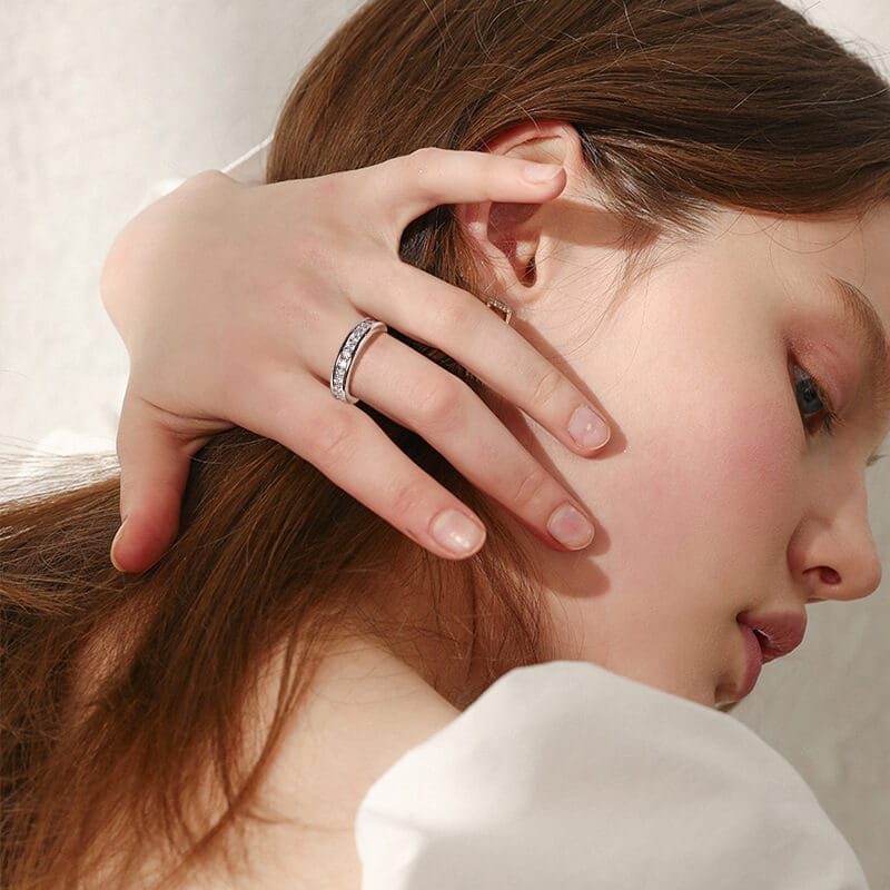 Moissanite Wedding Band Ring with 925 Sterling Silver