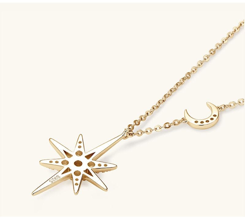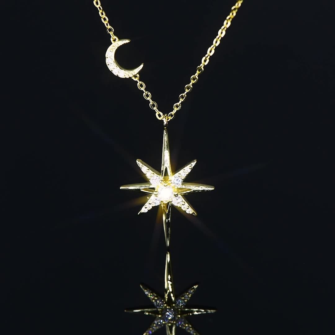 The dazzling North Star Moissanite Necklace✨. The design is inspired by the North Star, classic and simple, suitable for any occasion. The necklace is made of 925 sterling silver with gold plating, which makes it more luxurious.