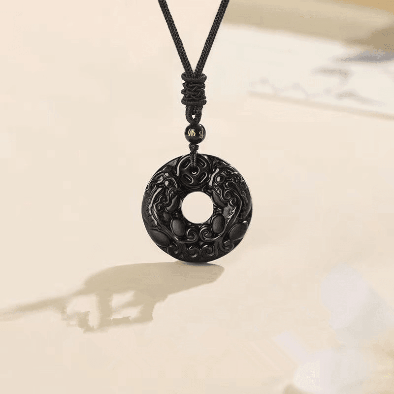 - This black obsidian pendant necklace is designed in the shape of peace buckle, which is so unique and minimalist that it can show your vintage aesthetic.
